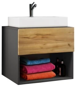 VCM 3-tlg. Waschplatz Waschtisch Badmöbel Set Waschbecken Schublade Spiegelschrank Lisalo L