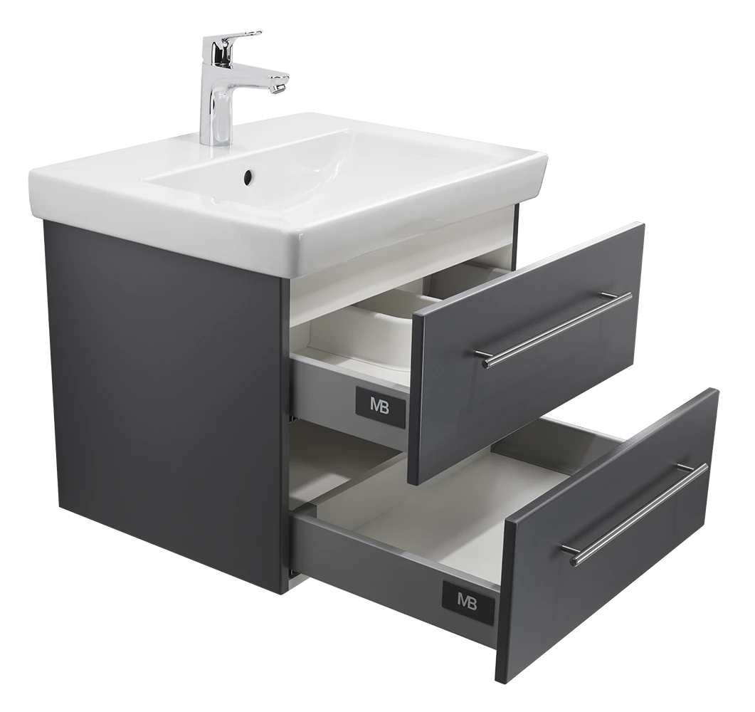 Badmöbel inkl. Villeroy & Boch Waschbecken Subway 2.0 60cm und passendem Unterschrank in anthrazit Seidenglanz