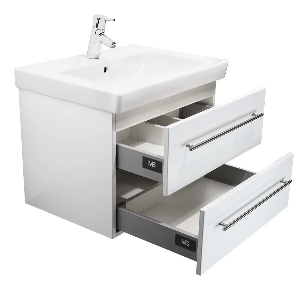 Badmöbel inkl. Villeroy & Boch Waschbecken Subway 2.0 65cm und passendem Unterschrank in weiß Hochglanz