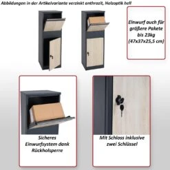 Paketkasten MCW-G80, Paketbox Standbriefkasten Paketbriefkasten Größe XL ~ Verzinkt Anthrazit-weiß