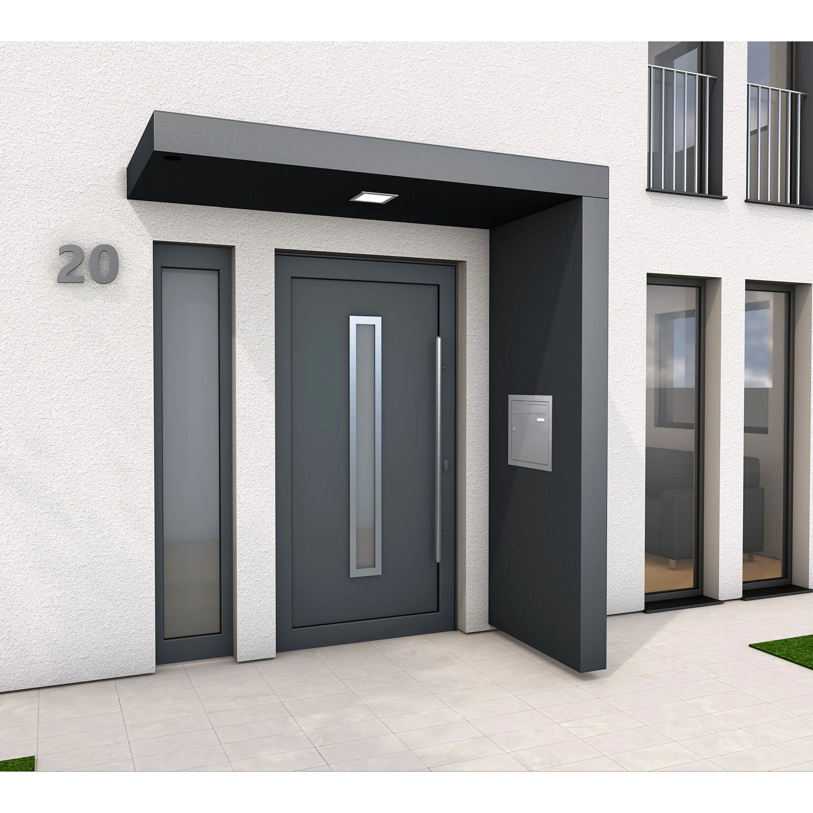 - Gutta BS PLUS 200 Rechteckvordach mit Seitenteil rechts und Briefkasten UP10-110E