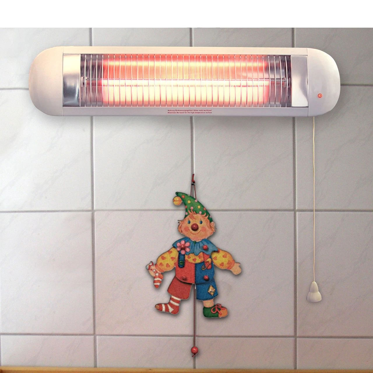 Dieser Heizstrahler mit 600 Watt Strahlerleistung ist für den kurzen Gebrauch beim Wickeln, Umziehen oder nach dem Bad Ihres Babys gedacht und schaltet sich automatisch nach 10 Minuten ab. So haben Sie genügend Zeit Ihr Baby in aller Ruhe und bei angenehmer und wohltuender Temperatur anzuziehen. Der Heizstrahler ist tropfwassergeschützt und verfügt über einen praktischen Zugschalter.