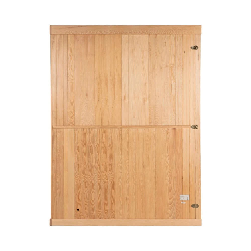Um den Saunagang stetig zu verbessern, ist diese Sauna jetzt mit einem großen Holzgriff auf beiden Seiten ausgestattet. Im Gegensatz zu Edelstahlgriffen bietet er den großen Vorteil, sich nicht der Umgebungstemperatur anzupassen. Verbrennungen an einem aufgeheizten Griff gehören somit der Vergangenheit an.
