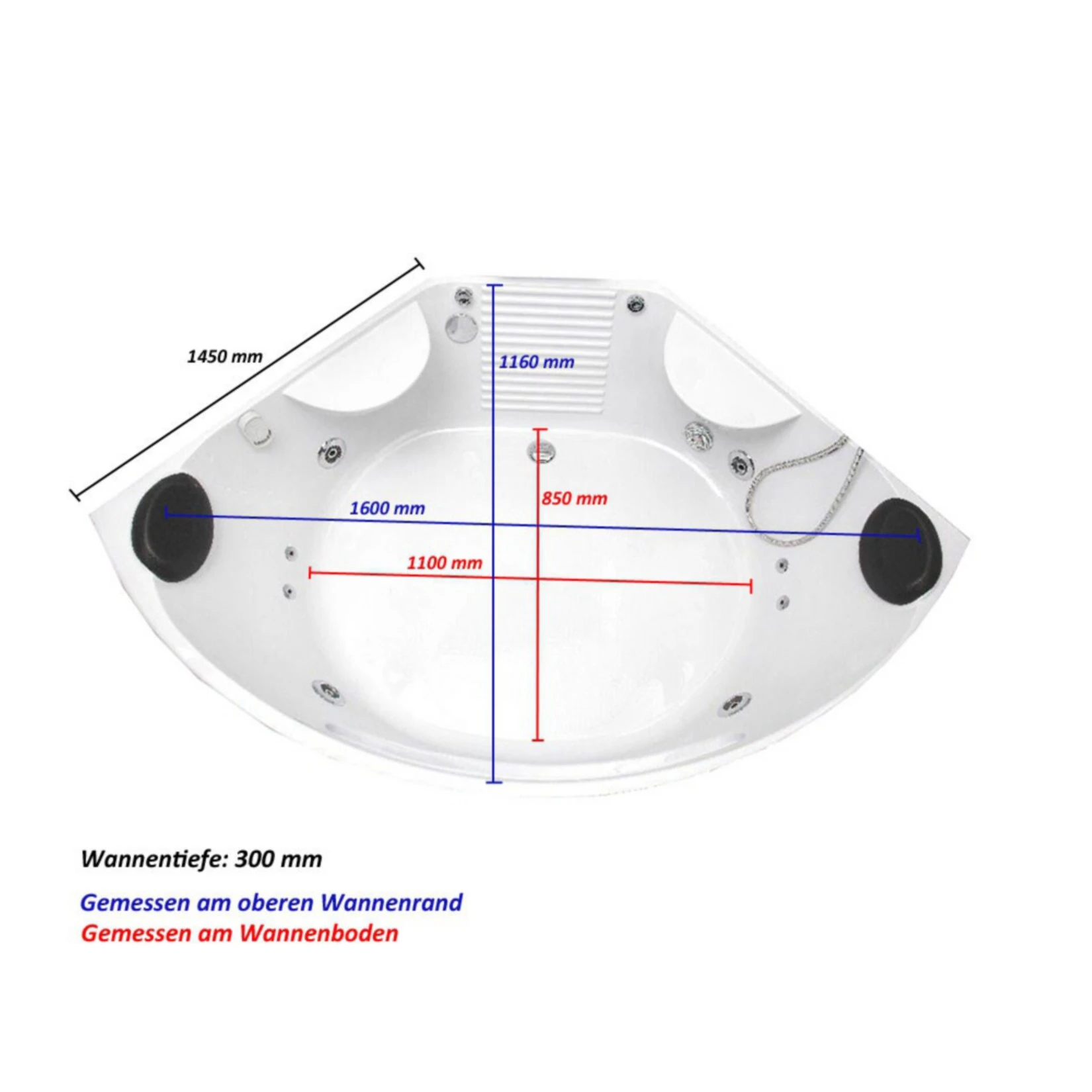 – Whirlpool arbeitet mit 4x Whirlpooldüsen und 4x Body-/Hydrojets (arbeiten mit Wasserdruck)