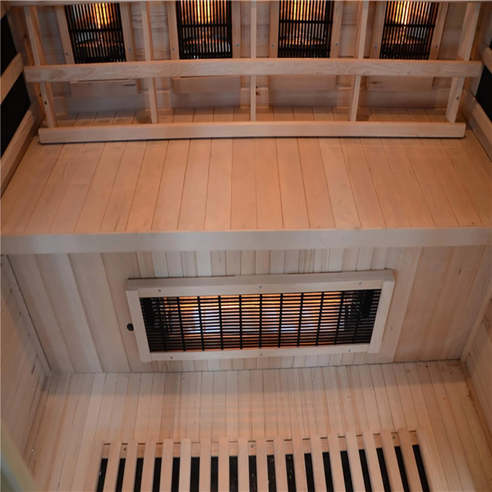 – 3 Flächenstrahler (Carbonstrahler) 2 an den Seitenwänden der Kabine und 1 am Boden