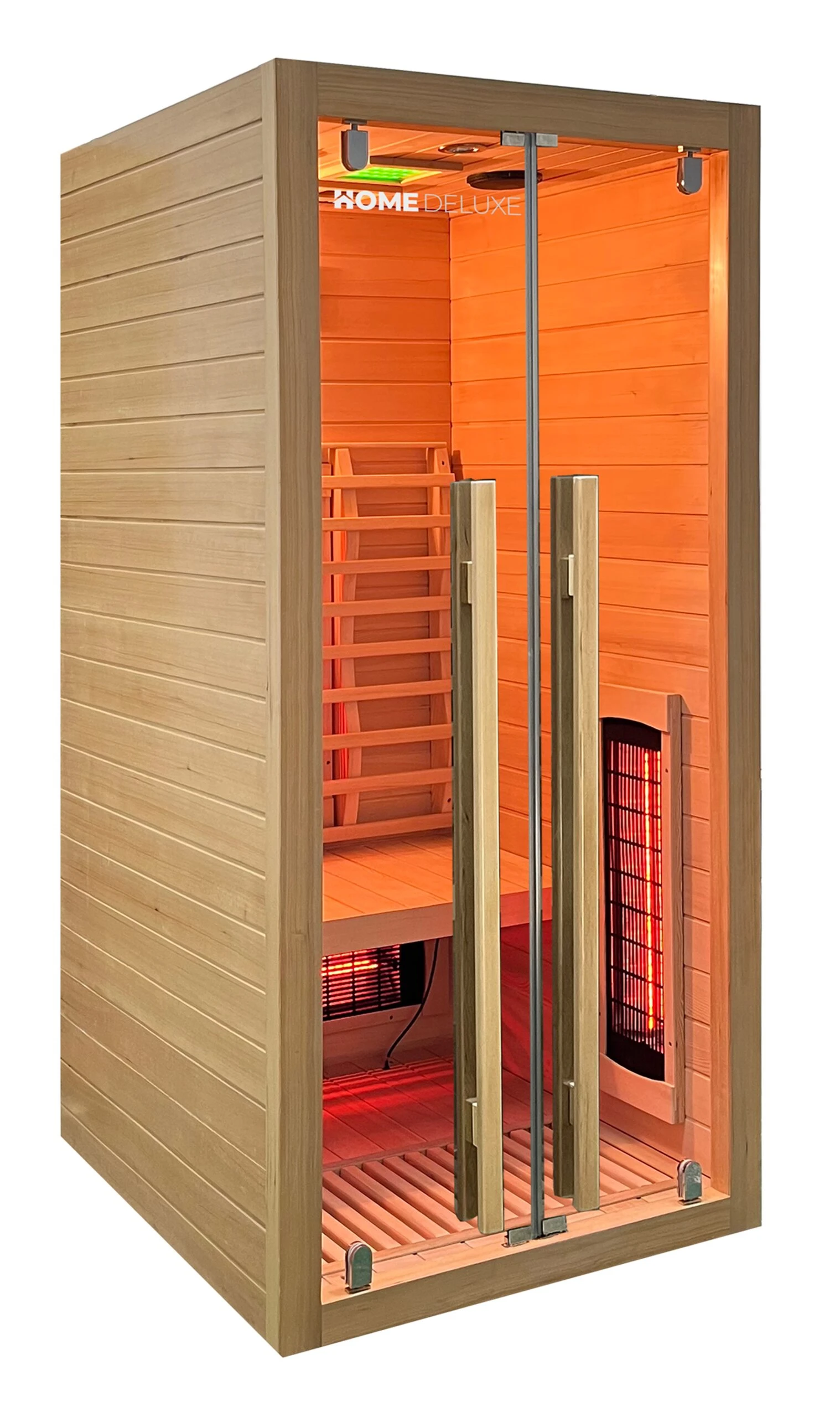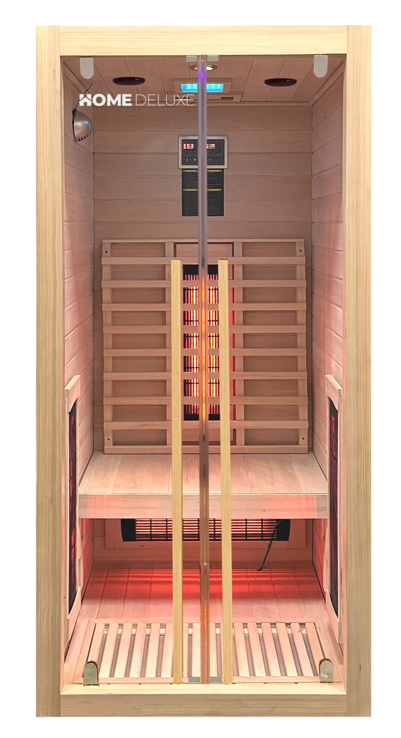 Die Infrarotsauna SONORA S bietet Platz für eine Person. Mit einer Gesamtbreite von 90 cm findet sie praktisch überall Platz.