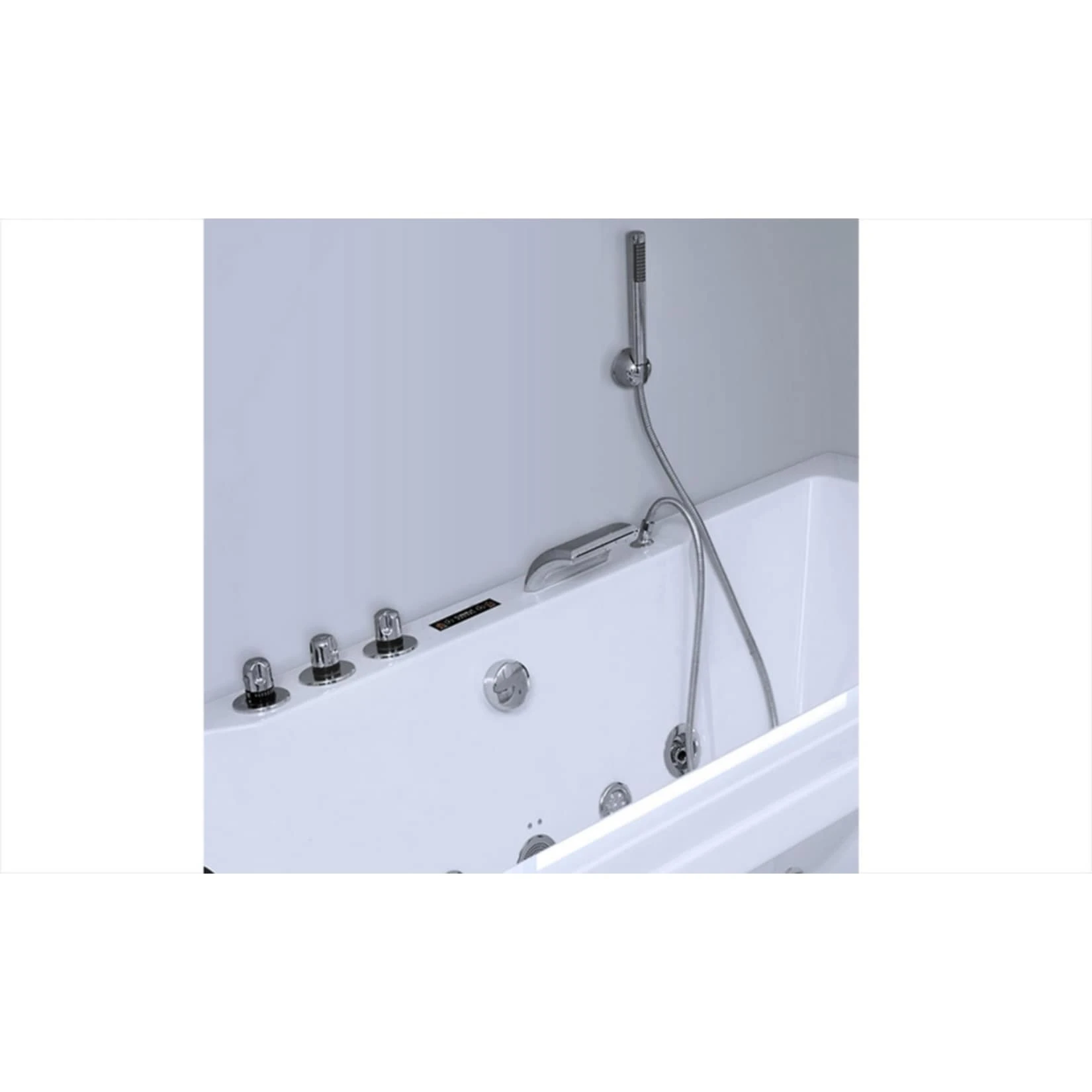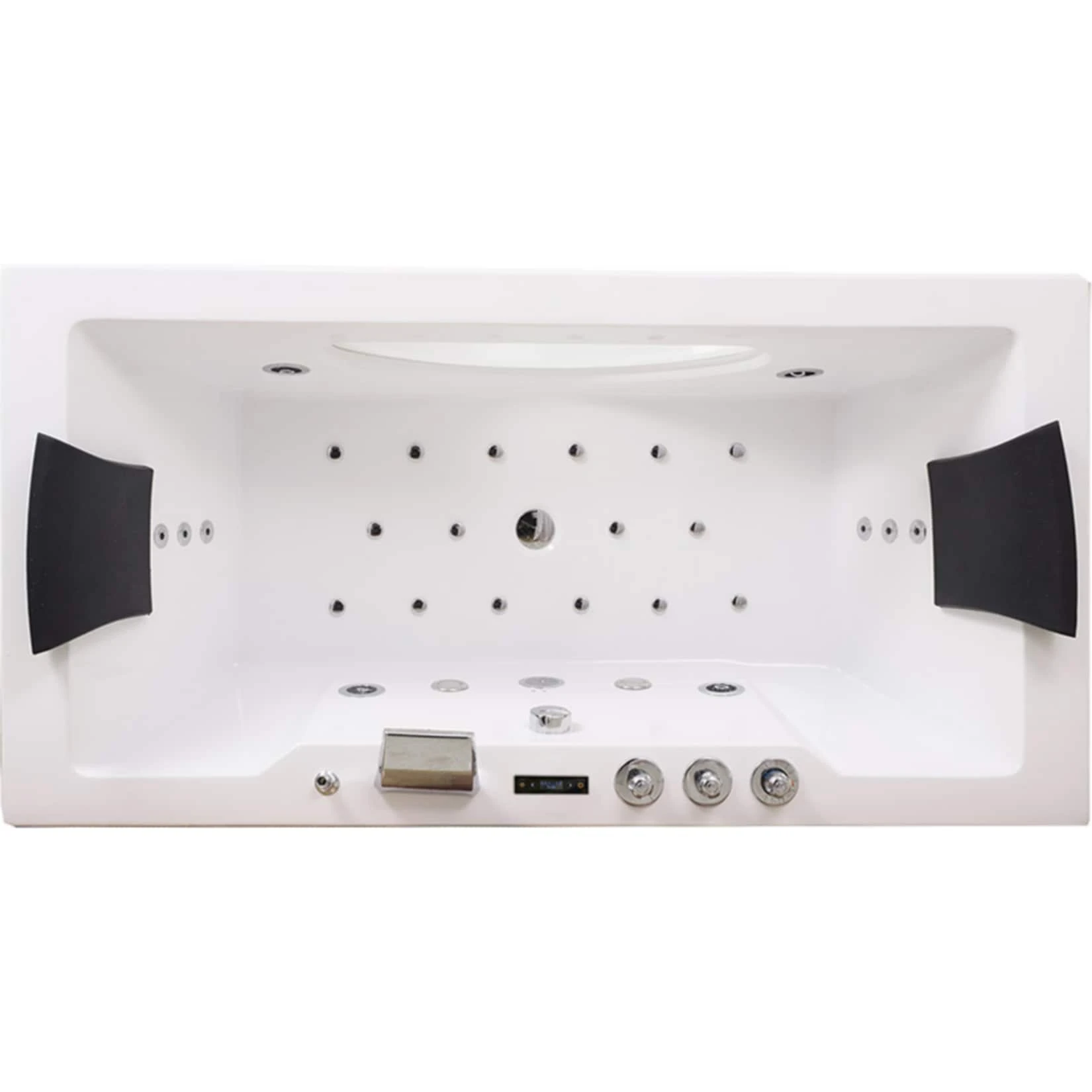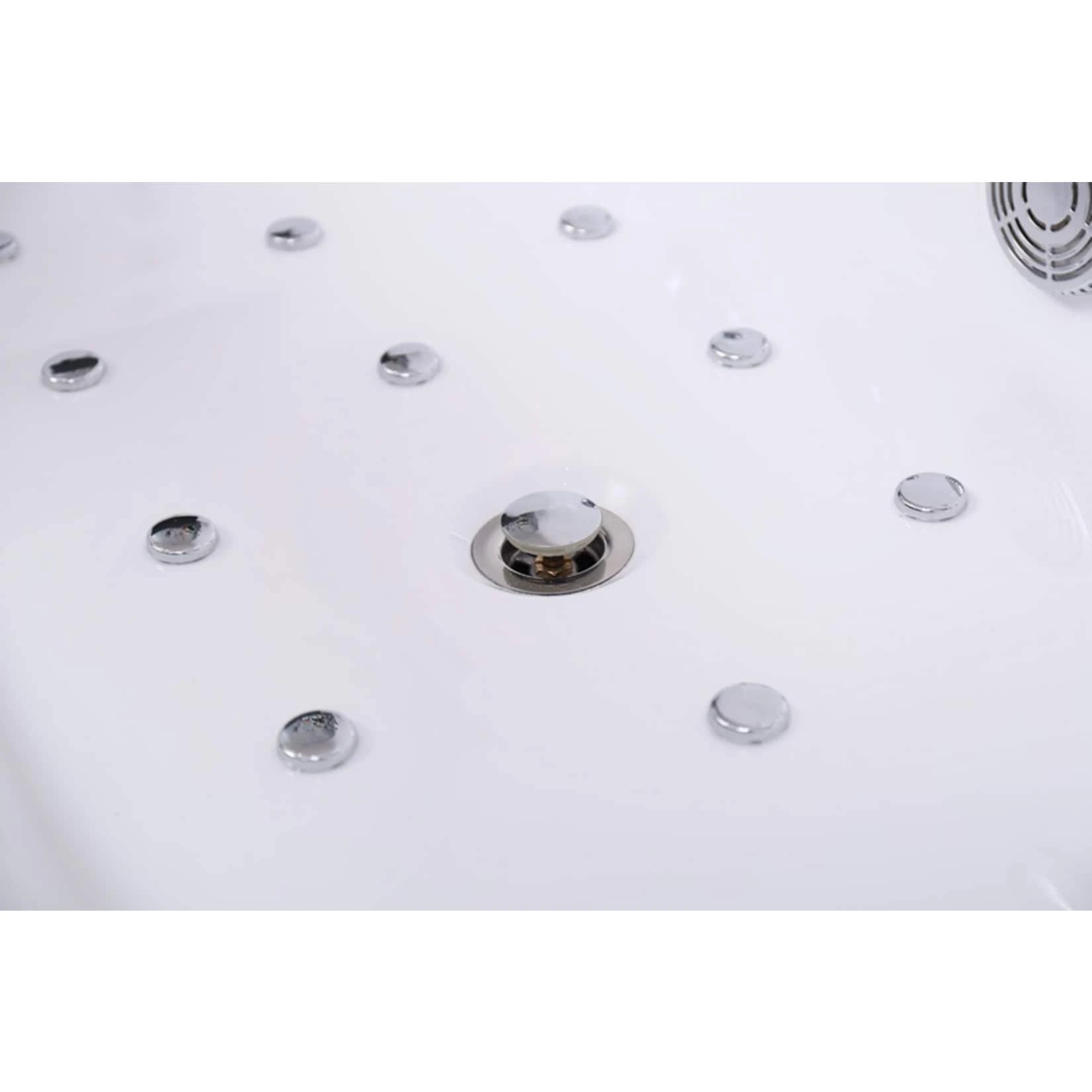Wenn Sie ein Produkt suchen, das keine Wünsche offen lässt, ist dieser geräumige Whirlpool die perfekte Lösung. Mit diesem Ziel vor Augen, wurde die Laguna-Serie eigens von uns ergonomisch konzipiert. Dank der beachtlichen Größe von ca. 180 x 90 x 55 cm und der zwei Kopfstützen kann dieser Whirlpool auch gerne zu zweit genutzt werden. Die 4 verstellbaren großen Whirlpooldüsen, die 6 Bodyjets und die 16 Airjets, machen das Entspannungserlebnis perfekt. Selbstverständlich ist auch der gewöhnliche Gebrauch als normale Badewanne möglich. Der separate Wanneneinlass unabhängig von der Handbrause oder dem Wasserfall verspricht ein schnelles Badeerlebnis. Das moderne Design, gepaart mit guter Funktionalität, runden unseren Topseller ab. Entspannen Sie sich bei einem belebenden Whirlpoolgang, während die innovative Farblichttherapie das Wasser in zwei sanften und beruhigenden Farben schimmern lässt. Die integrierte Heizung des Whirlpools sorgt dauerhaft für eine angenehme Temperatur. Nicht nur die Eigenschaften sind herausragend, auch die Qualität ist für den angegebenen Preis mehr als fair. Hier zu erwähnen sind vor allem das verstärkte strahlend weiße ABS-Sanitäracryl, die hochwertigen Armaturen sowie auch die Aluminium-Rahmenkonstruktion und das computergesteuerte Touch-Bedienelement. Die auf fast jeden Untergrund anzupassenden höhenverstellbaren Füße der Wanne machen dieses Produkt nahezu an jedem Ort montierbar.