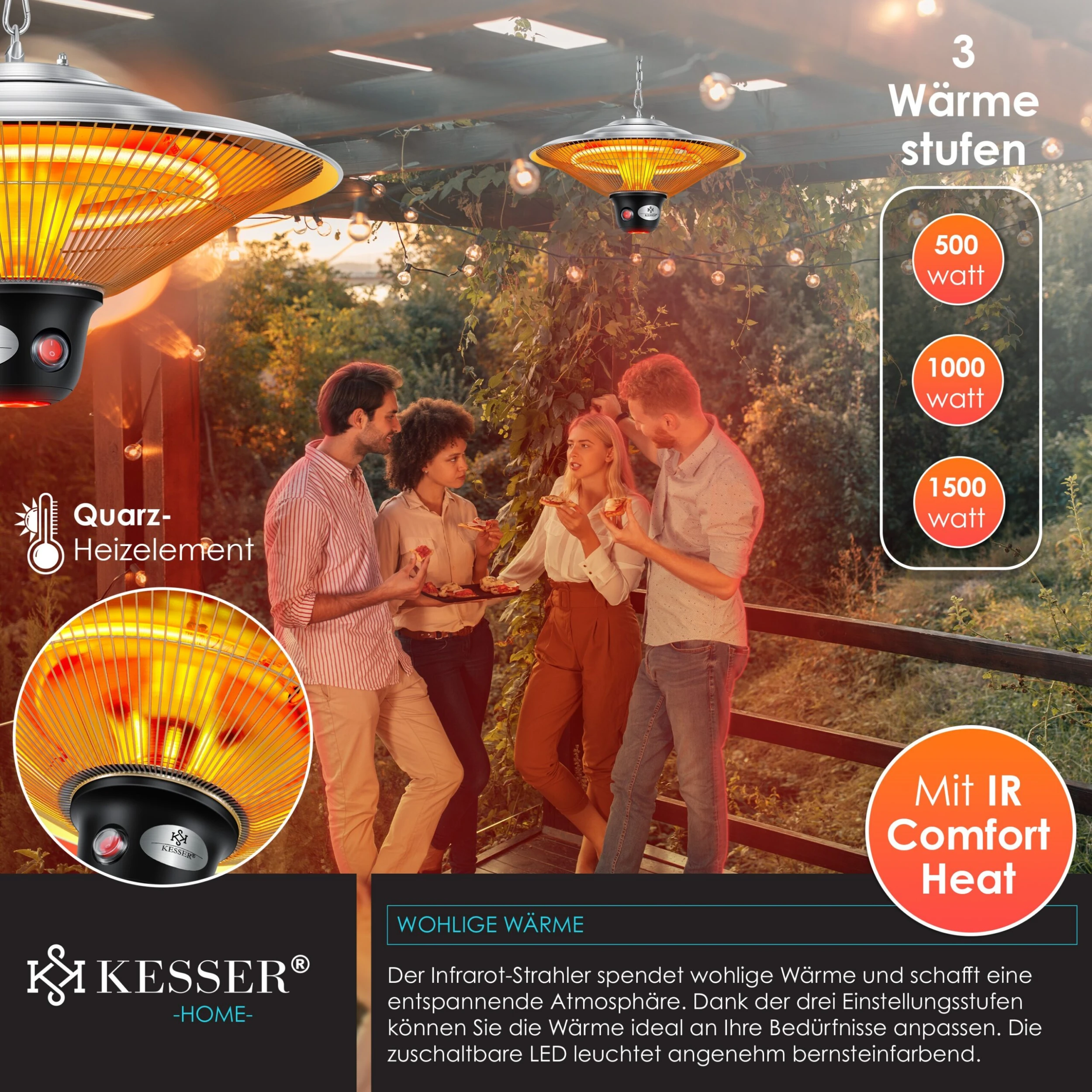 KESSER Deckenheizstrahler 1500W, 3 Heizstufen für wohlige Wärme, Spritwassergeschützt und dem Eindringen von Fremdkörpern, robuster Aluminiumschirm, geruchs-, rauch- und lautstärkefrei heizen