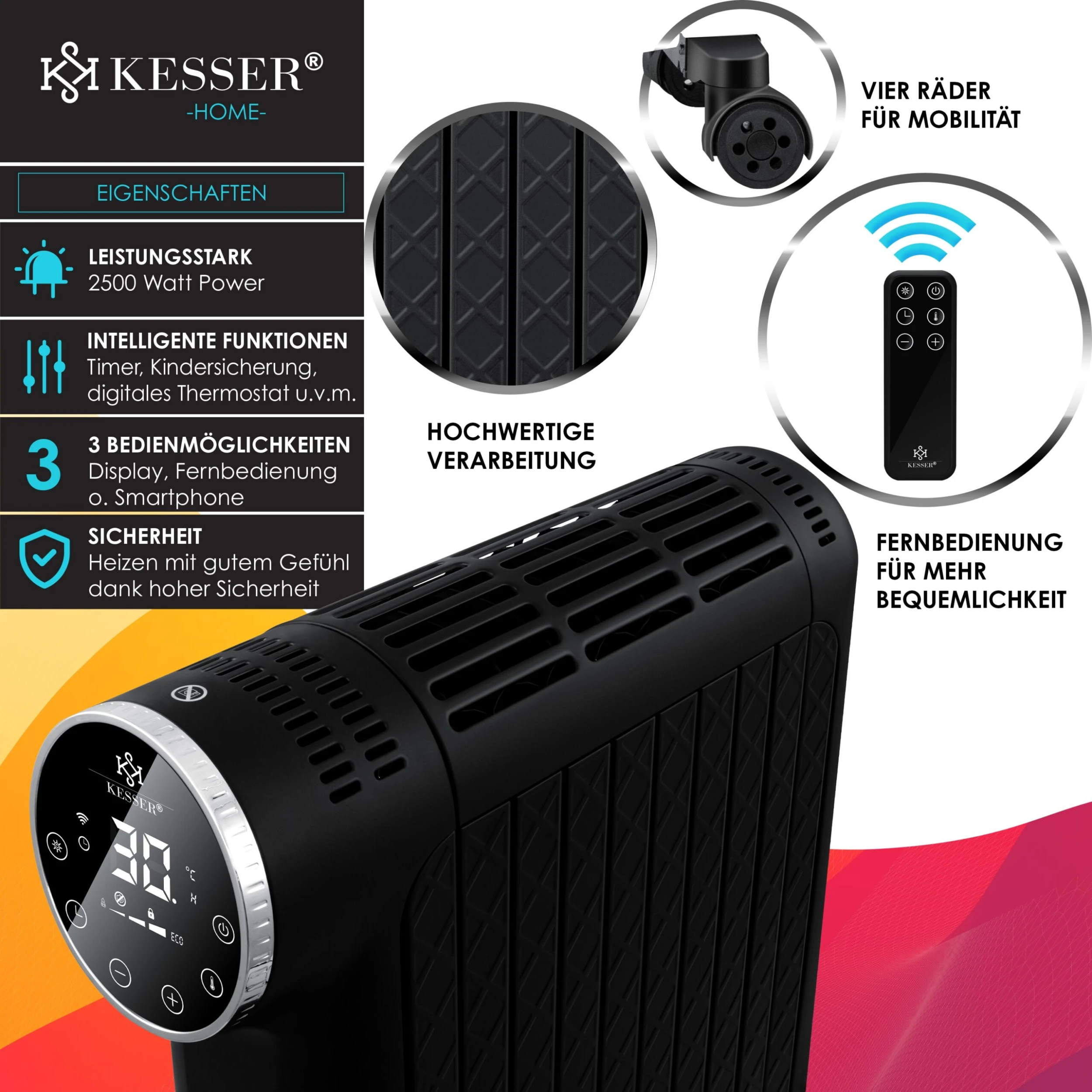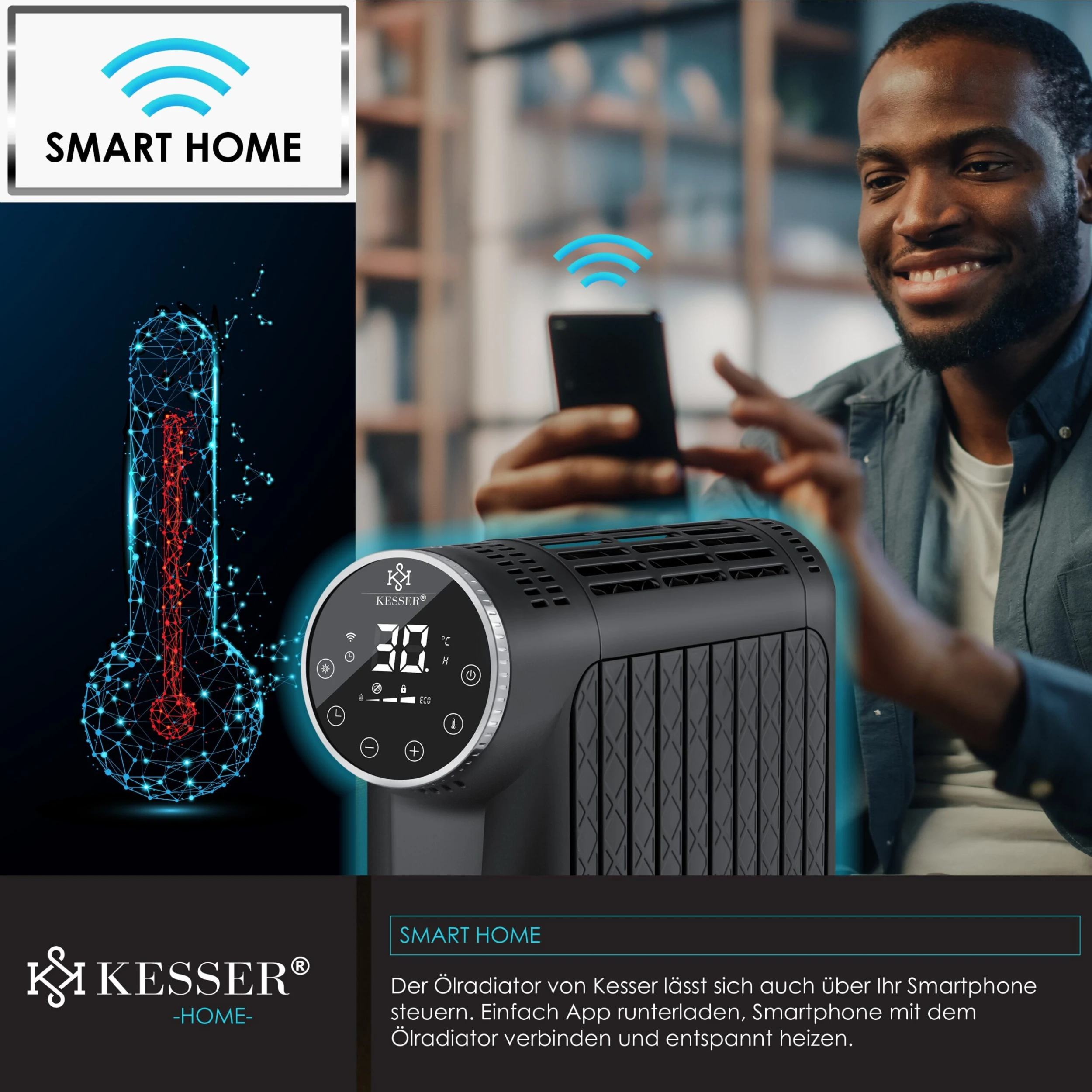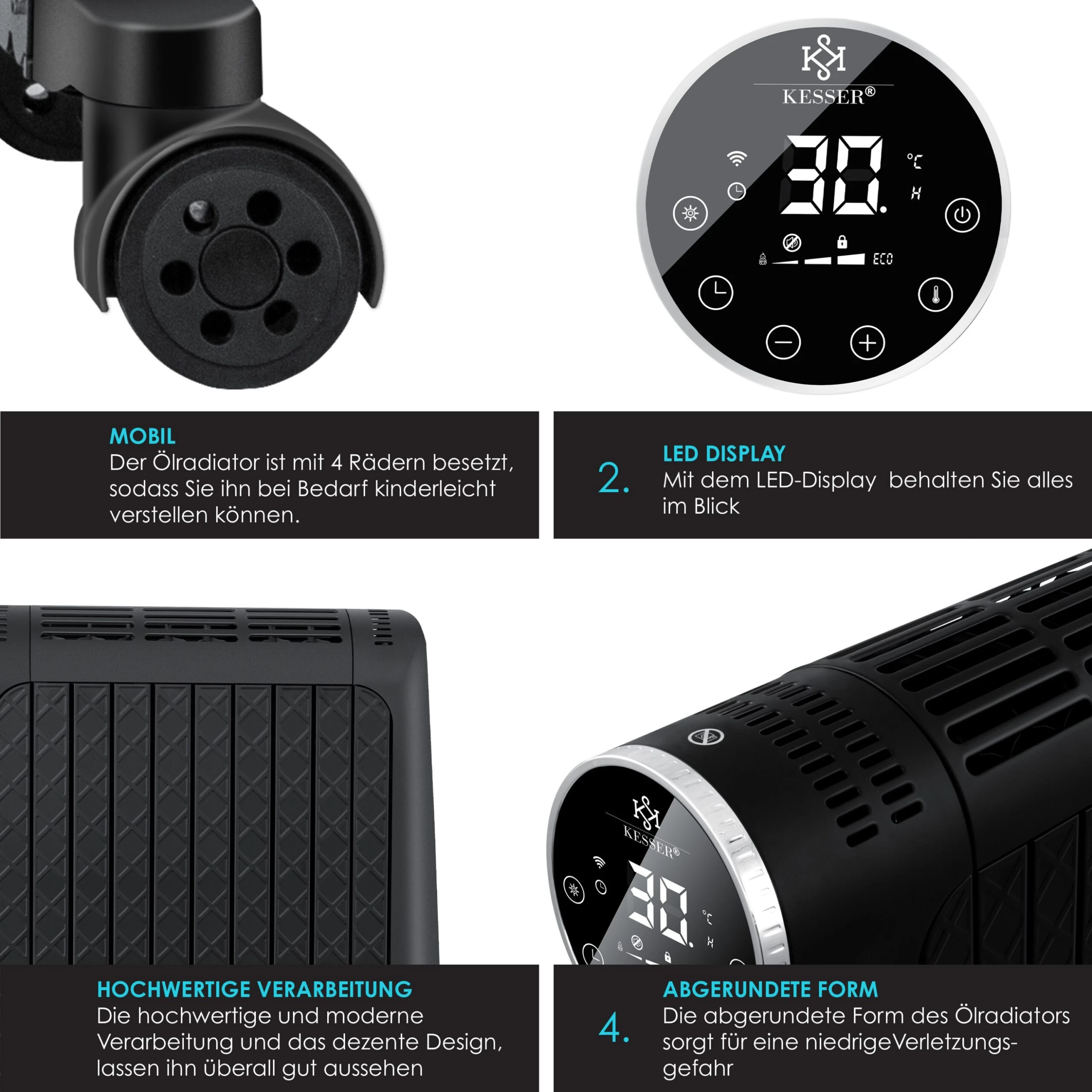 KESSER Ölradiator mit WiFi Smart Home – App und Fernbedienung, LED-Display, Inkl. Timer und Thermostat, Umkippschutz und Kindersicherung, wärmt bereits nach 6 Minuten