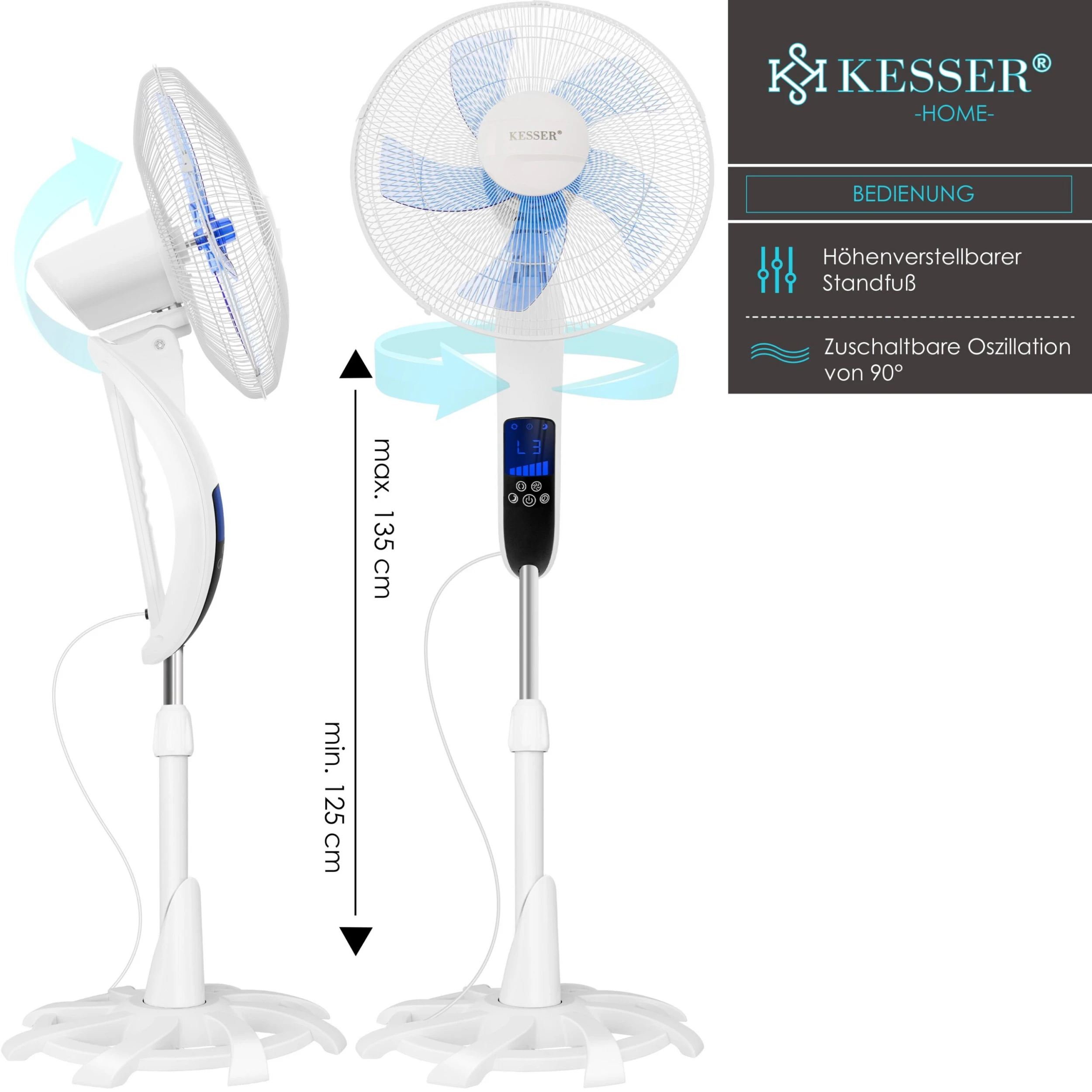 KESSER Standventilator 45cm Mit Fernbedienung und LED Anzeige und Timer, 3 Geschwindigkeitsstufen, höhenverstellbar und Neigungswinkel verstellbar.