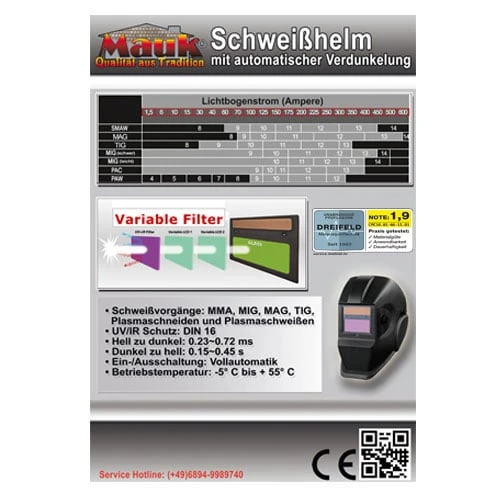 Dank des automatischen Systems, dass eine Verdunkelung des LCD Displays beim Schweißvorgang automatisch durchführt wird der Anwender sowohl vor Spritzern und Funken als auch vor schädlicher UV-Strahlung zuverlässig schützt.