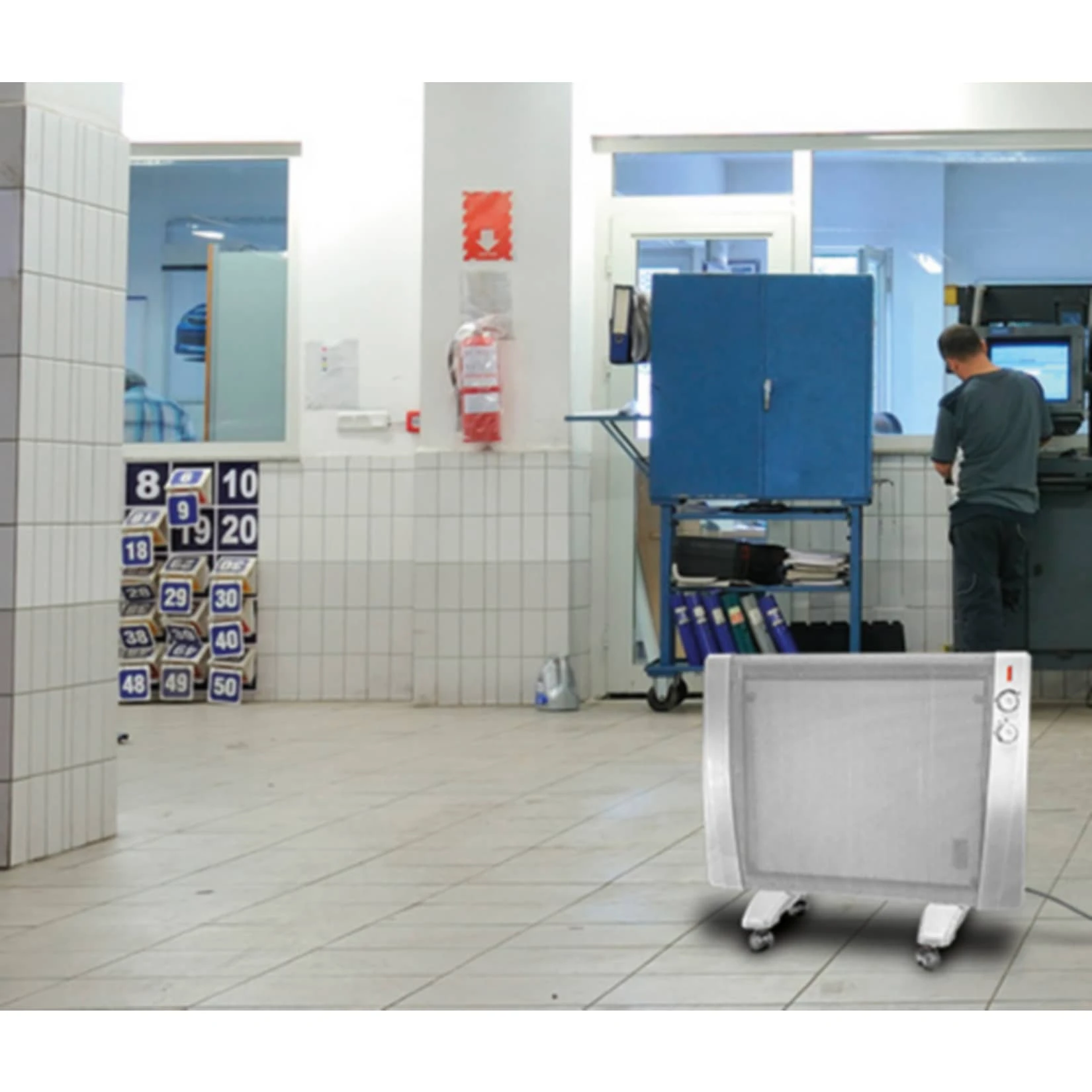 Mit drei einstellbaren Leistungsstufen können Sie die Heizleistung ganz Ihren Bedürfnissen anpassen. Zwei extra breite Standfüße bieten optimalen Schutz gegen Umkippen. Die vier einsteckbaren 360° Rollen sorgen für beste Manövrierbarkeit beim Transport.