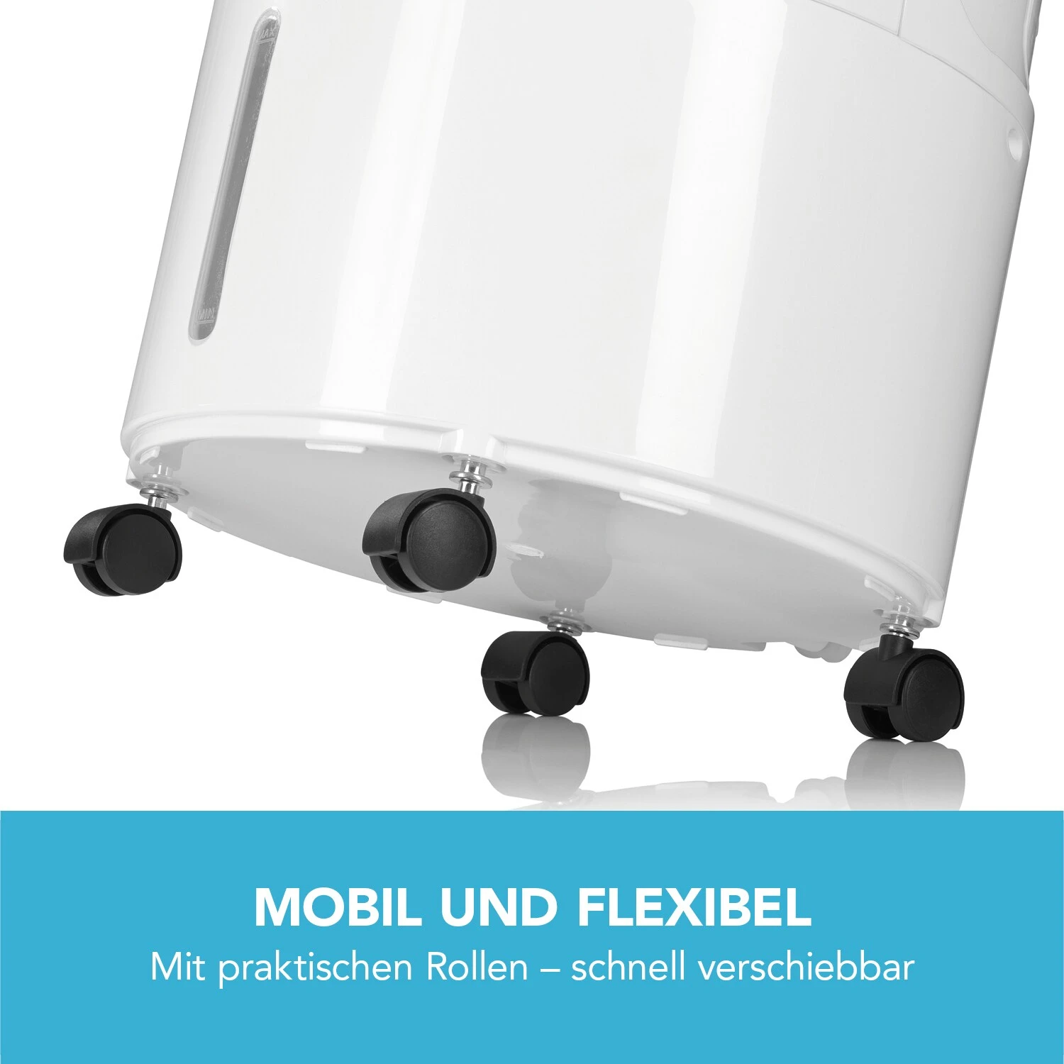 - Der Luftkühler lässt sich sehr vielseitig im Wohn- oder Arbeitsbereich einsetzen und sich dank der Rollen schnell und einfach von einem Raum in den anderen schieben.