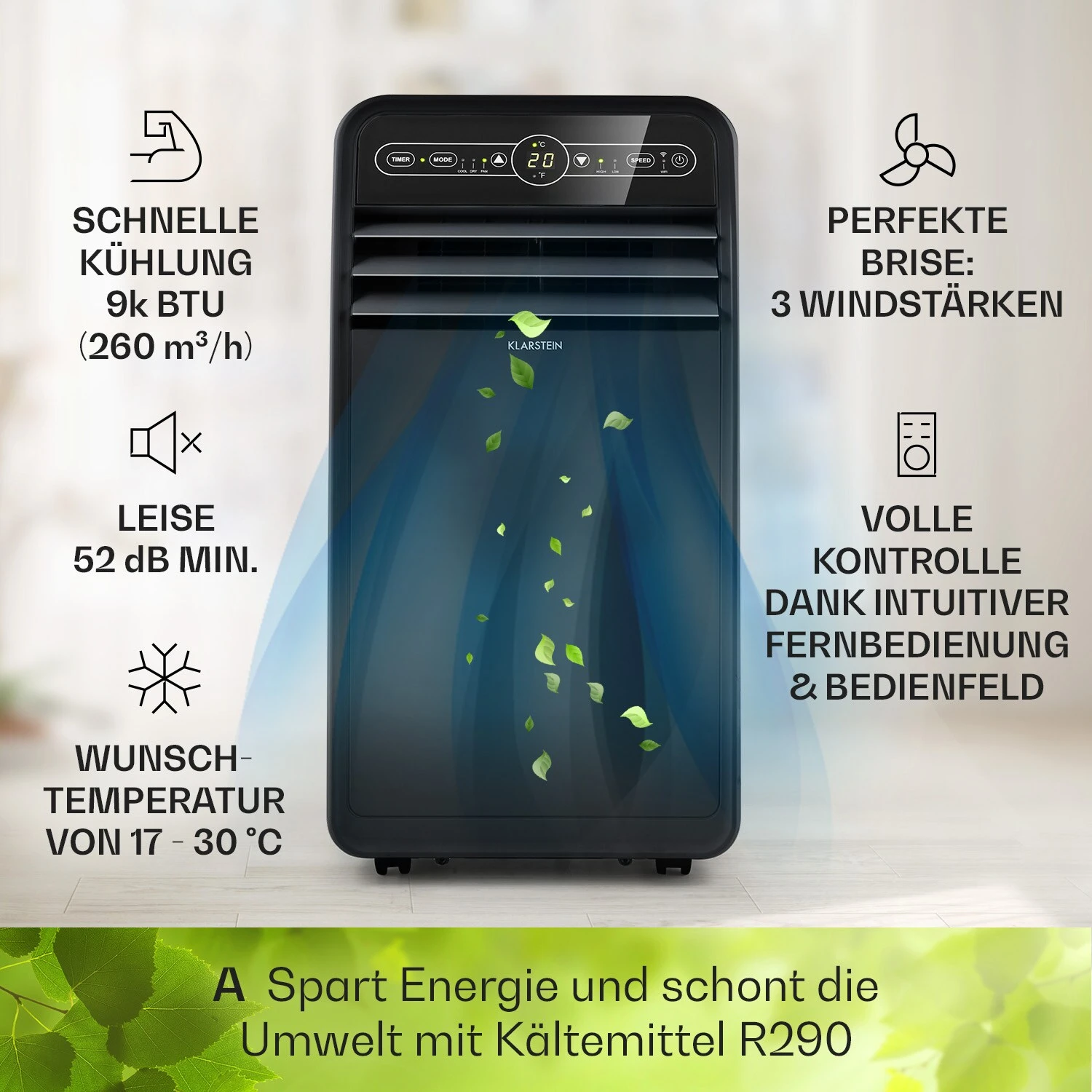Klarstein Metrobreeze 9 New York City Klimaanlage 9.000 BTU/2,6 kW Timer schwarz