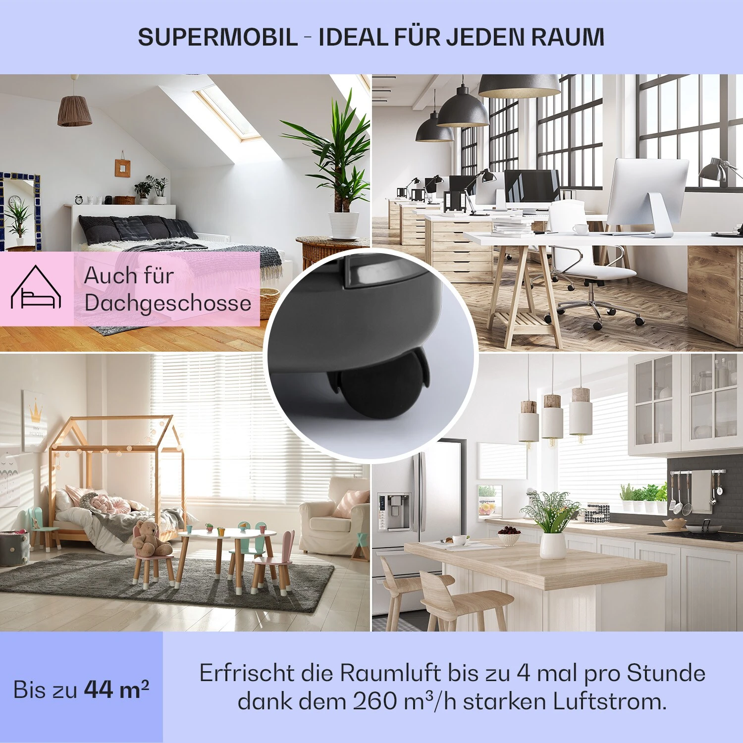 - Mobile Klimaanlage mit 9.000 BTU/2,6 kW Leistung für Räume von 26-44 m² und Energieklasse A