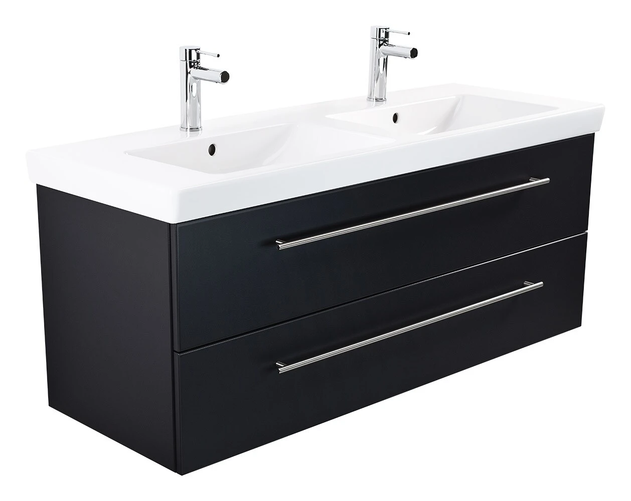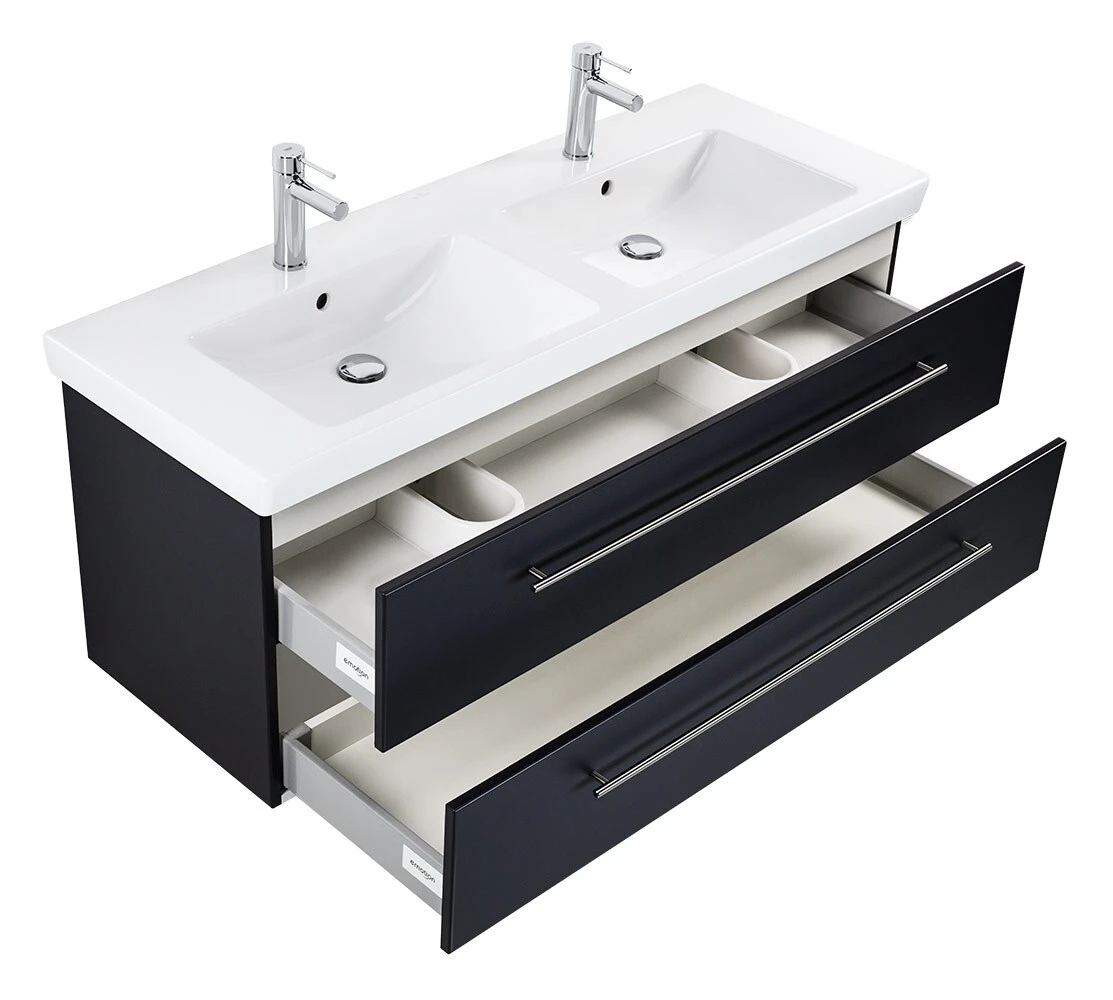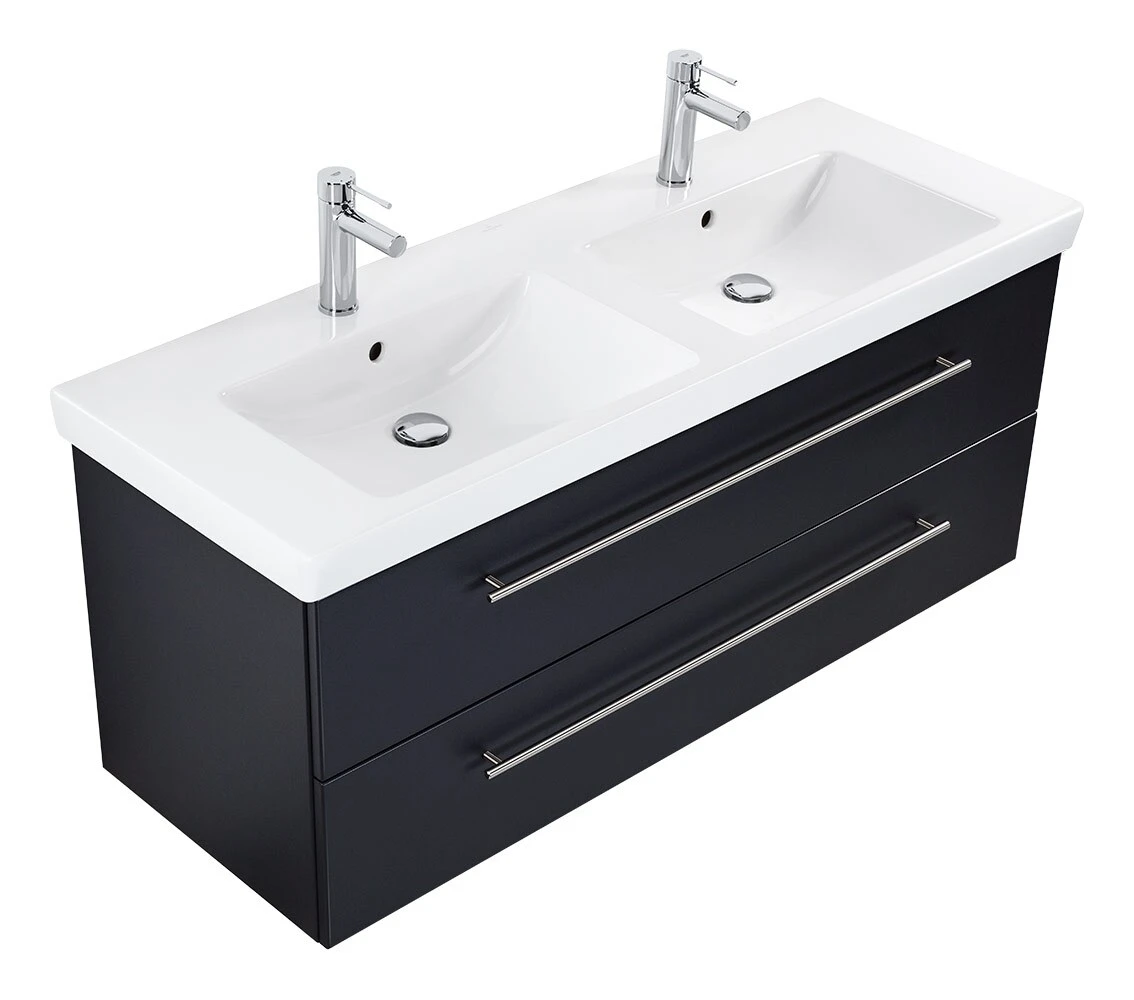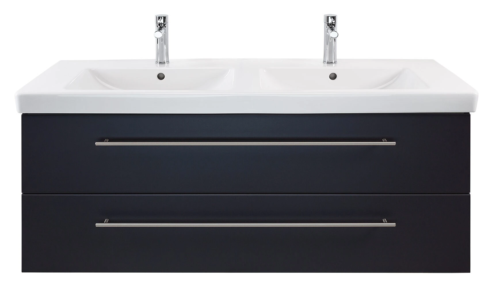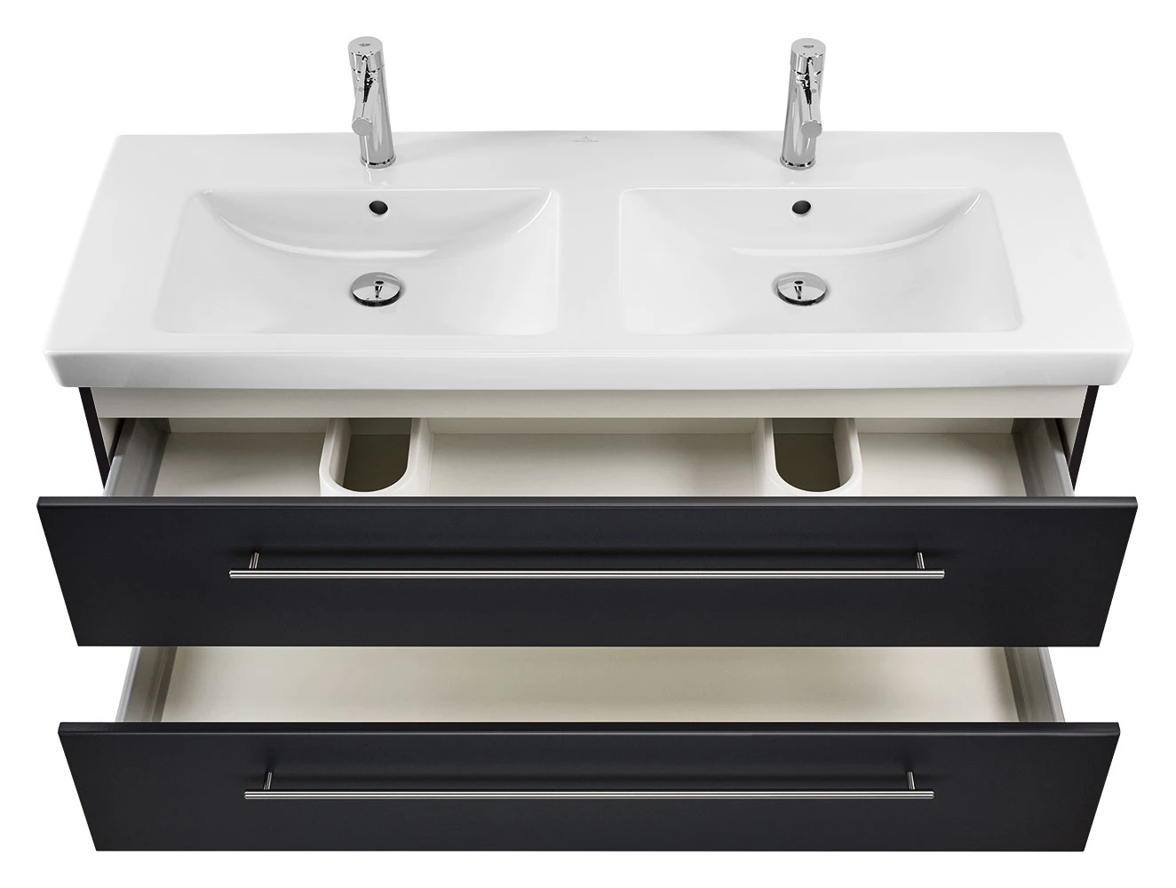 Badmöbel inkl. Villeroy & Boch Waschbecken Subway 2.0 130cm und passendem Unterschrank in anthrazit Seidenglanz