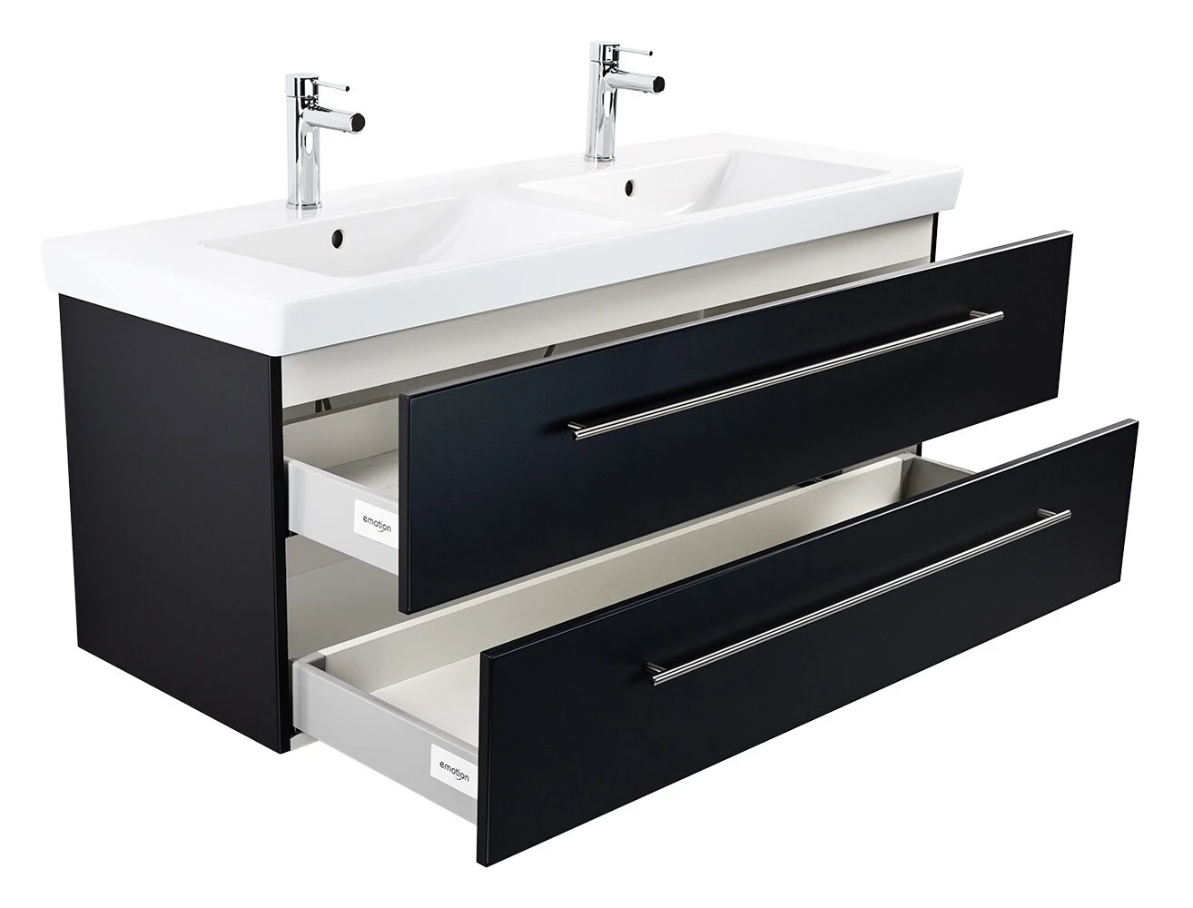 Mit einem trockenen Tuch die 2 Softclose Schubladen von innen auswischen. Von außen mit einem feuchten Tuch den Korpus abwischen. Scharfkantige Gegenstände vermeiden, da sonst die Beschichtung leidet. Den Glanz vom Keramik Doppelwaschbecken ganz einfach mit etwas Spülmittel wieder herstellen. Bringen Sie neuen Glanz in ihr Bad! Greifen Sie jetzt zu!