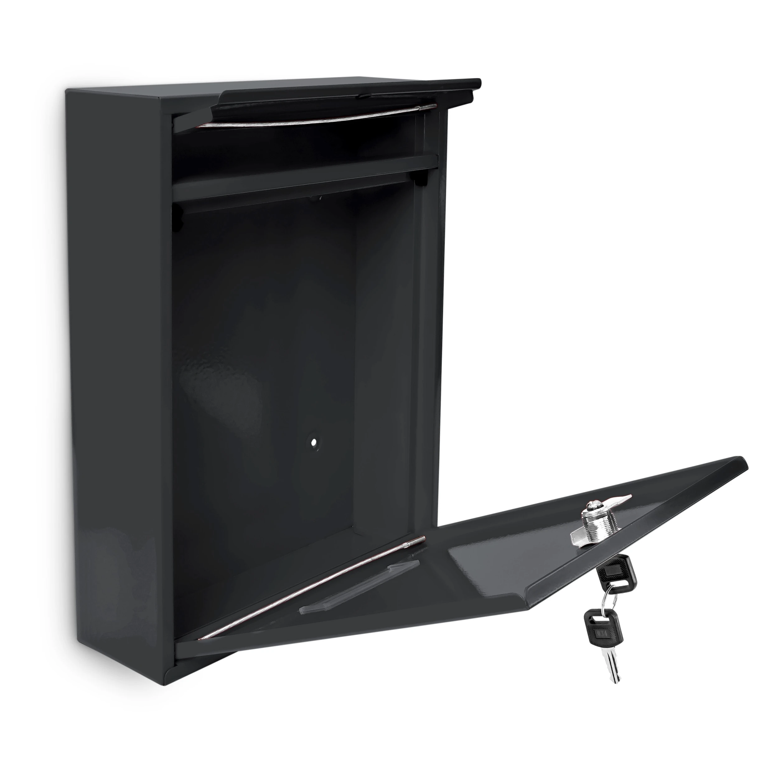 Eine schlichte Außenfassade kann durch simple Kniffe aufgehübscht werden. Mit diesem Briefkasten im minimalistischen Design setzen Sie nicht nur einen modernen Akzent, sondern erhalten gleichzeitig einen Aufbewahrungscontainer für Ihre Post. Der kleine Briefkasten ist kompakt genug für schmalere Wandflächen. Durch den Einwurfschlitz passen bedenkenlos auch Tageszeitungen oder Kataloge. Die abschließbare Klapptür öffnet nach unten. So können Sie bequem Ihre Post entnehmen.Design Briefkasten im Detail