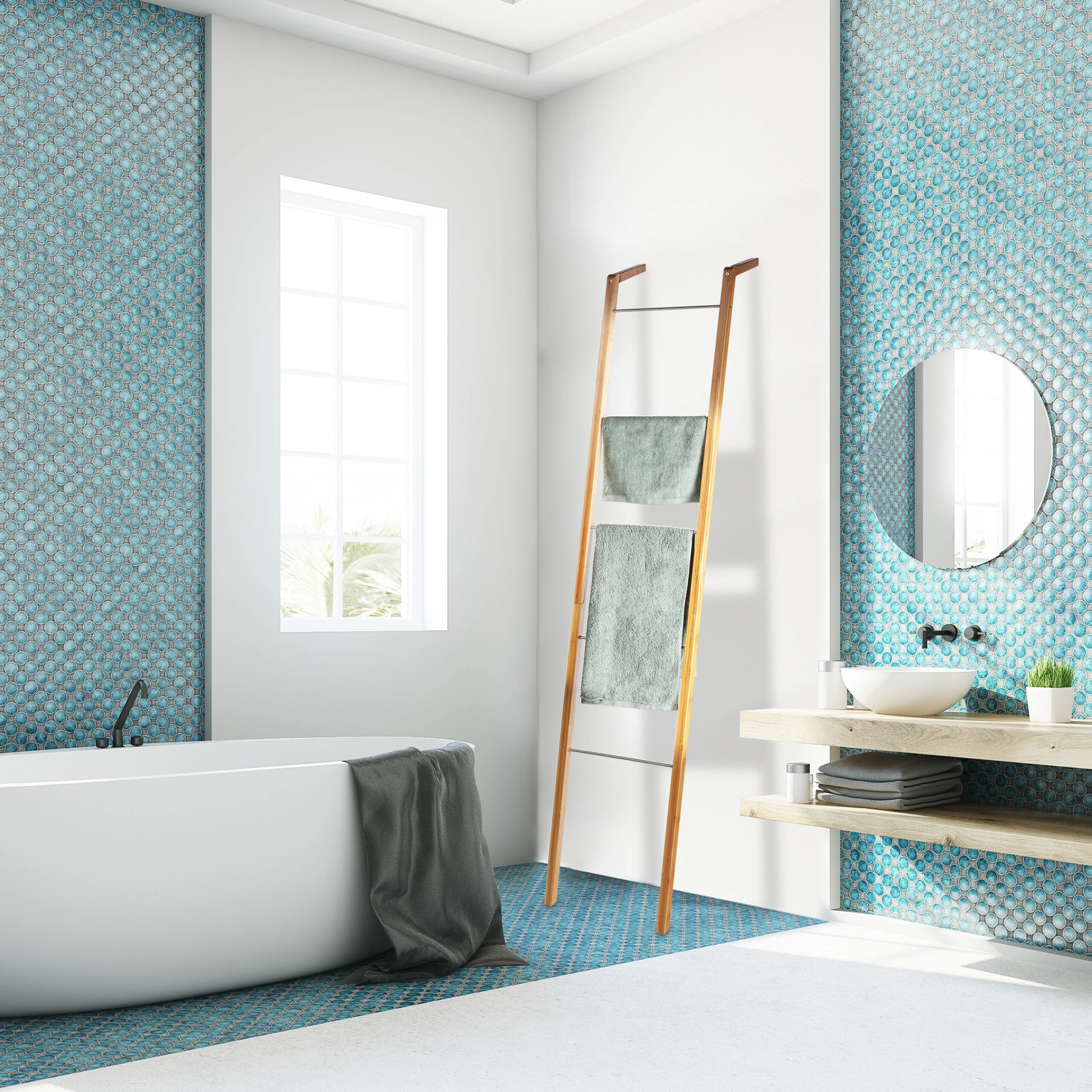 Nutzen Sie die Möglichkeit Ihre Handtücher platzsparend zu trocknen. Die Kleiderleiter aus Bambus kann problemlos an einer Wand Ihrer Wahl platziert werden. Sie ist schnell aufgebaut und flexibel einsetzbar. Legen Sie Handtücher oder Kleidung auf den Stahlsprossen ab oder nutzen Sie das Regal lediglich als Dekoleiter. Ob in der Küche, dem Bad oder dem Schlafzimmer, wählen Sie selbst einen Platz für das Leiterregal.