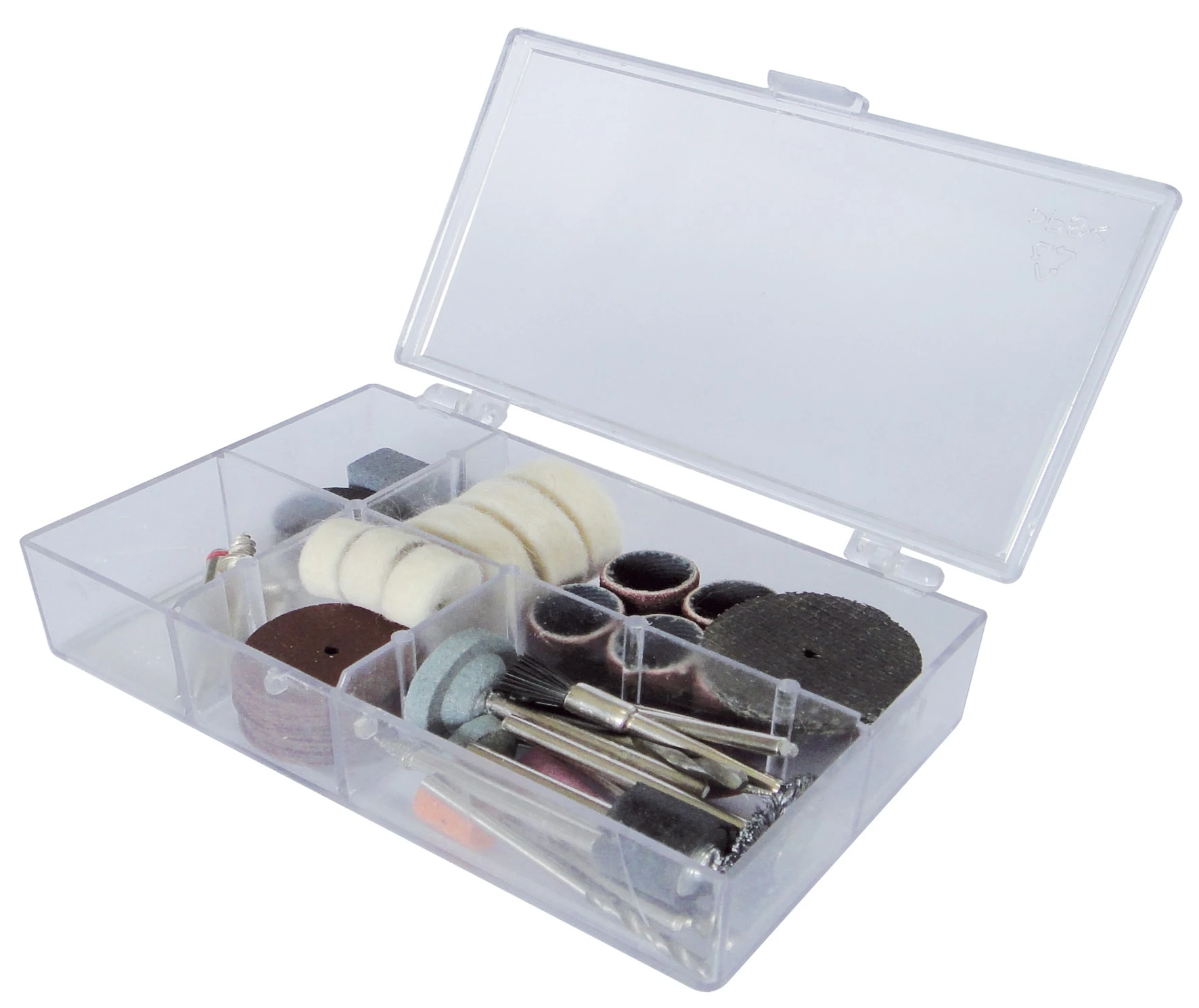 Das gesamte Zubehör wird übersichtlich verstaut in einer transparenten Kunststoffbox geliefert.