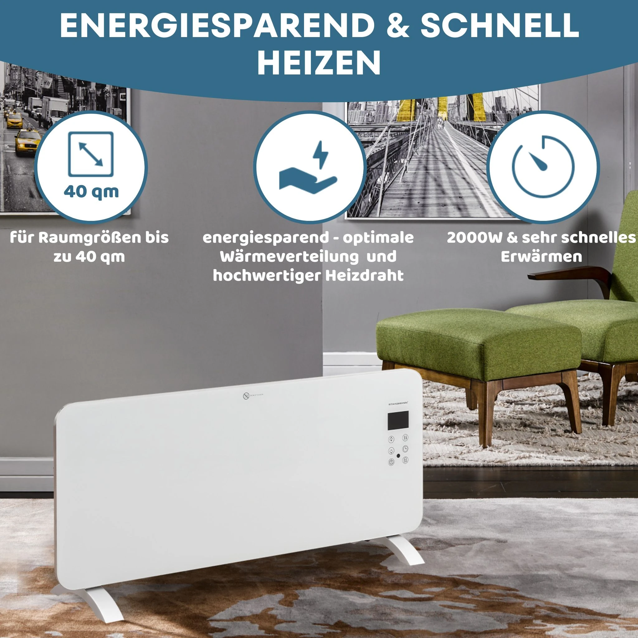 HEIZEN BIS 40 QM – ENERGIESPAREND & SCHNELL: Unser Konvektor erwärmt über den hochwertigen Heizdraht die Raumluft in kürzester Zeit und sorgt für optimale Wärmeverteilung. Dadurch ist er äußerst energiesparend und nachhaltig. Für Räume bis zu 40 qm geeignet, 2000W Leistung.