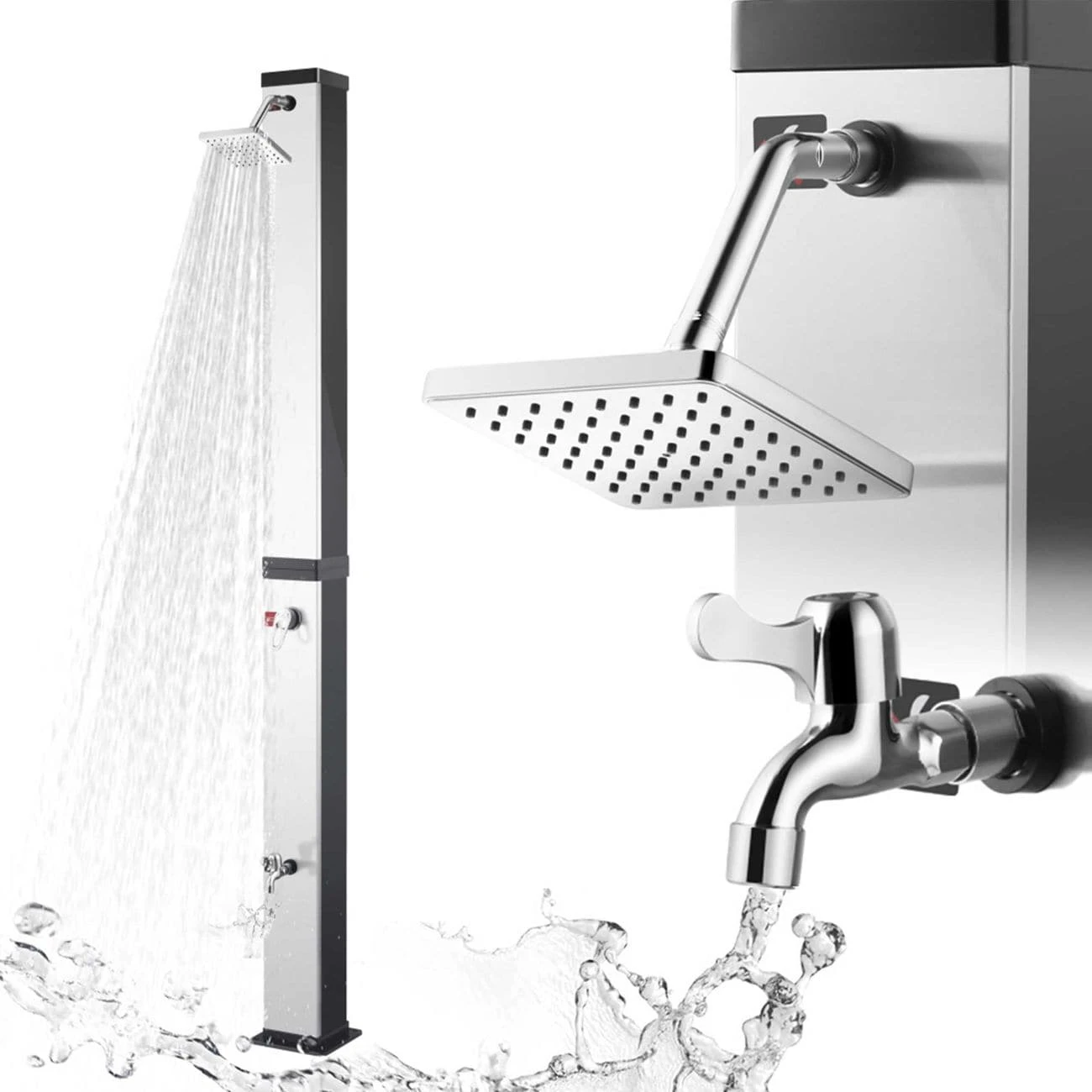 Zur Erfrischung zwischendurch, nach getaner Gartenarbeit oder zum kurzen Abbrausen vor dem Badespaß im Pool: Mit der Außendusche von Strattore kann der Sommer kommen. Dank des großen, schwenkbaren Regenduschkopfs wird das Duschen im Freien für Sie und Ihre Kinder zur willkommenen Abkühlung an heißen Tagen. Die Regendusche verfügt zusätzlich über einen Wasserhahn, der als Fußdusche genutzt werden kann, um die Füße bei Bedarf schnell und unkompliziert zu säubern.
