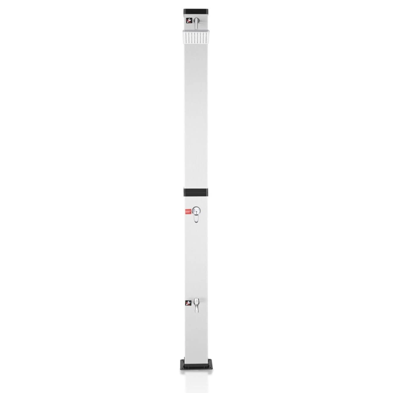 Aufgrund ihrer Materialkombination lässt sich die Solardusche aus UV-beständigem Kunststoff komfortabel transportieren und steht mit ihrem stabilen Sockel aus massivem Metall sicher auf dem Boden. Die beiliegenden Schrauben und Dübel erleichtern Ihnen die Montage. Somit ist die Solardusche im Handumdrehen aufgebaut.