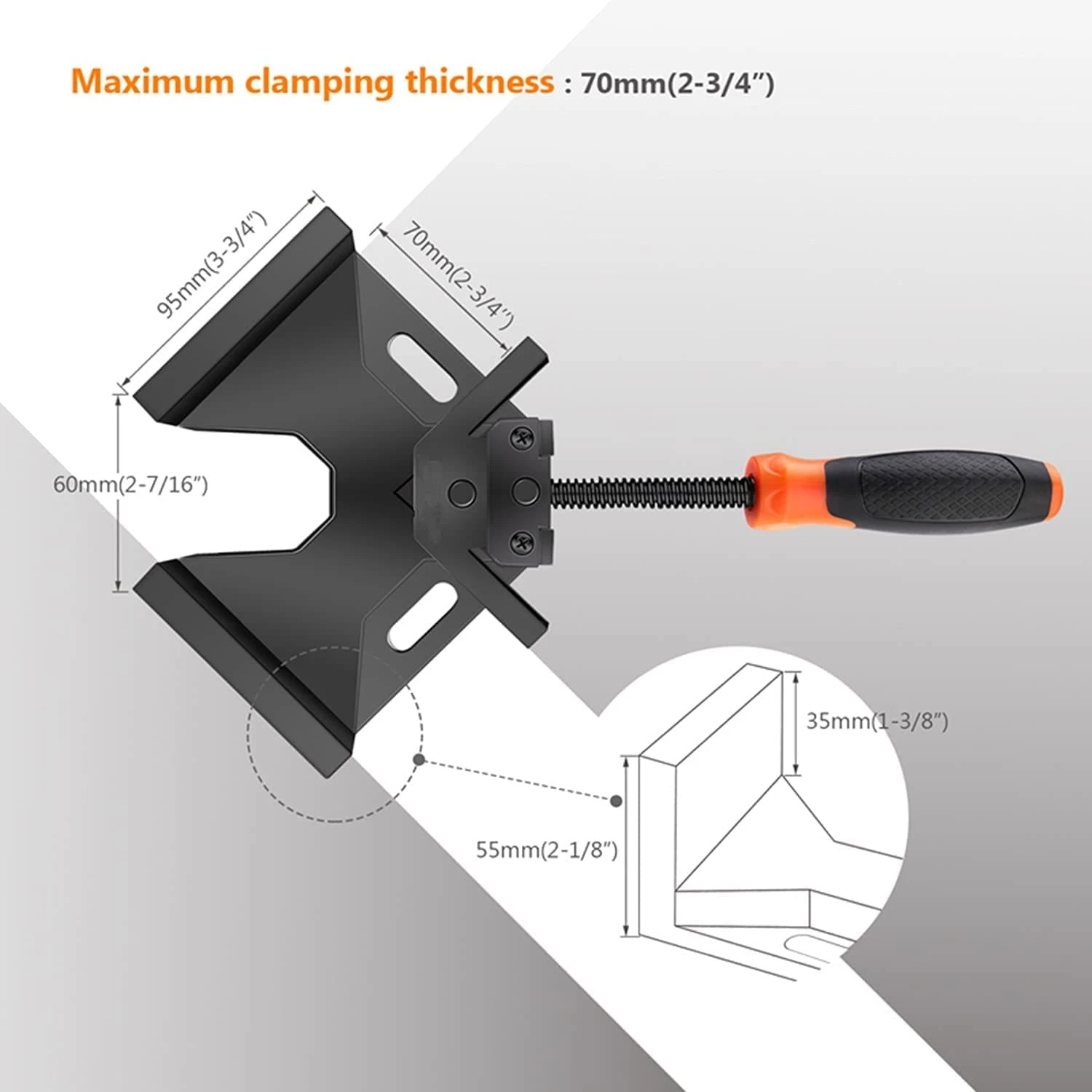SUFFIZIENTER SPANNBEREICH: Maximaler Spannbereich ist 2.75in/70mm; Backenbreite: 3.75in/95mm; Backentiefe: 1.4in/35mm; Ermöglicht die Verbindung von zwei Holzblöcken mit unterschiedlichen Dicken im rechten Winkel. Es kann die meisten großen Dinge aufnehmen, wie Metallrohr, Stahlstange, Holz, dickes Glas, für die Herstellung von Schränken, Kastenrahmen und Bilderrahmen, Fischtanks, und mehr