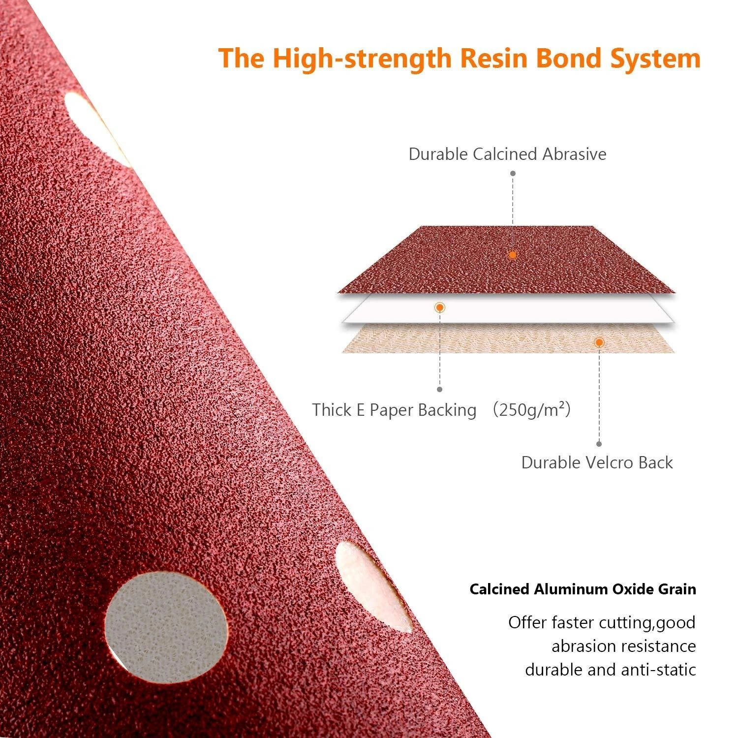 Langlebiges Klett- und Hakendesign: Die Schleifblätter mit Klettverschluss sind einfach und schnell anzubringen, praktisch und zeitsparend. Die starke Haftung des Schleifpapiers verhindert ein Verrutschen der Schleifplatte