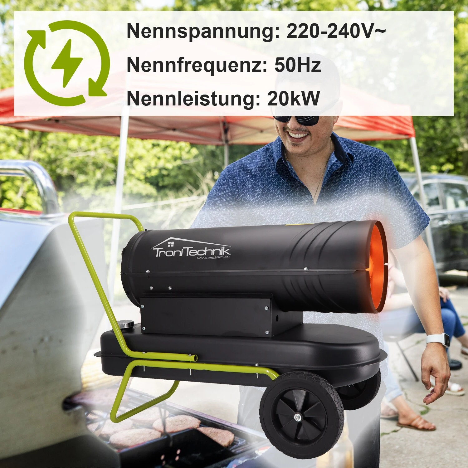 Ultimativer Partner um auch bei starken Anforderungen im Thema Beheizen gewappnet zu sein. Dies gilt im Außenbereich, wie z.B. einem großen Zelt, auf der Baustelle, in der Landwirtschaft oder auch in Werkstätten.