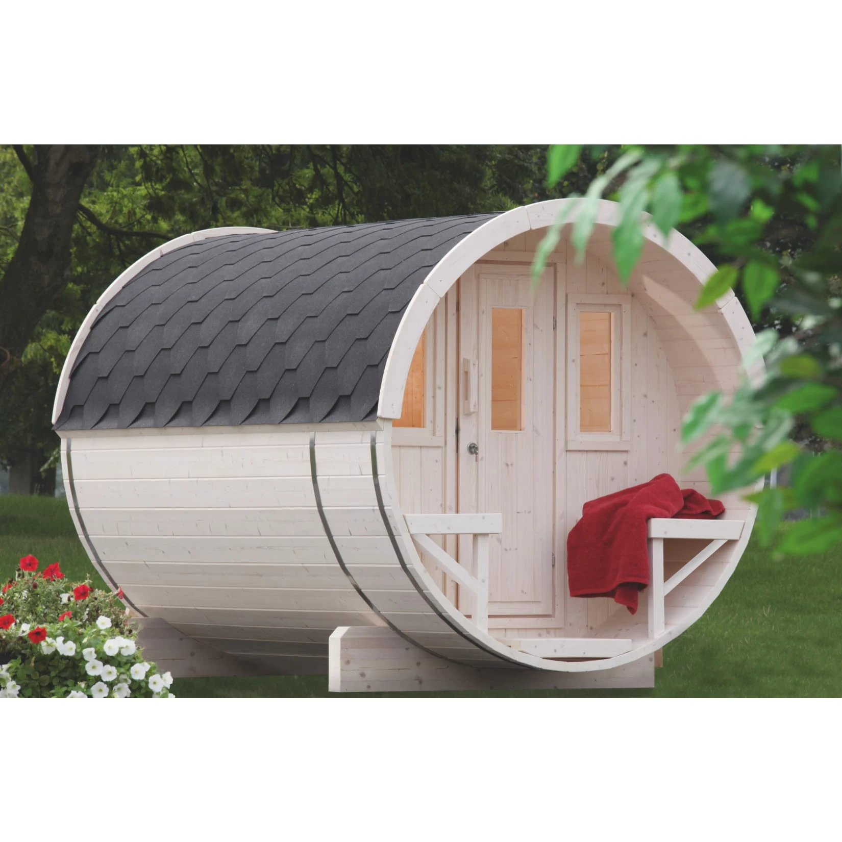 Das Saunafass 280 Bausatz schwarz von Wolff Finnhaus ist ein Saunahaus im Fass-Design.