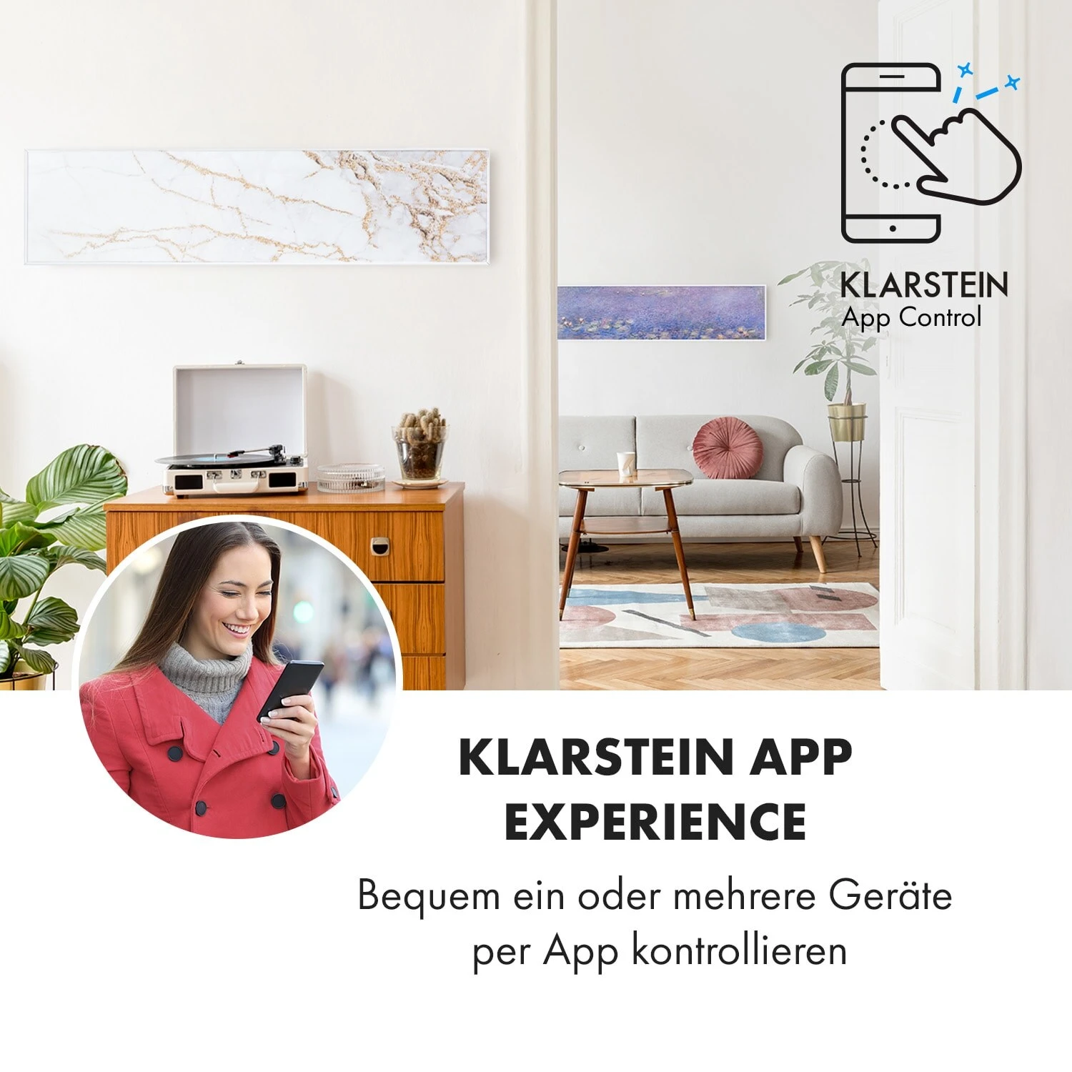 Mit smarter Technik zur Wohlfühlwärme: Die Klarstein Wonderwall Air Art Smart Infrarot-Heizung bringt nicht nur hocheffizient und platzsparend angenehme Wärme in jeden Raum, sondern verleiht dem Zimmer auch neuen Glanz und Farbe mit ihrer bedruckten Grafik-Design-Oberfläche.