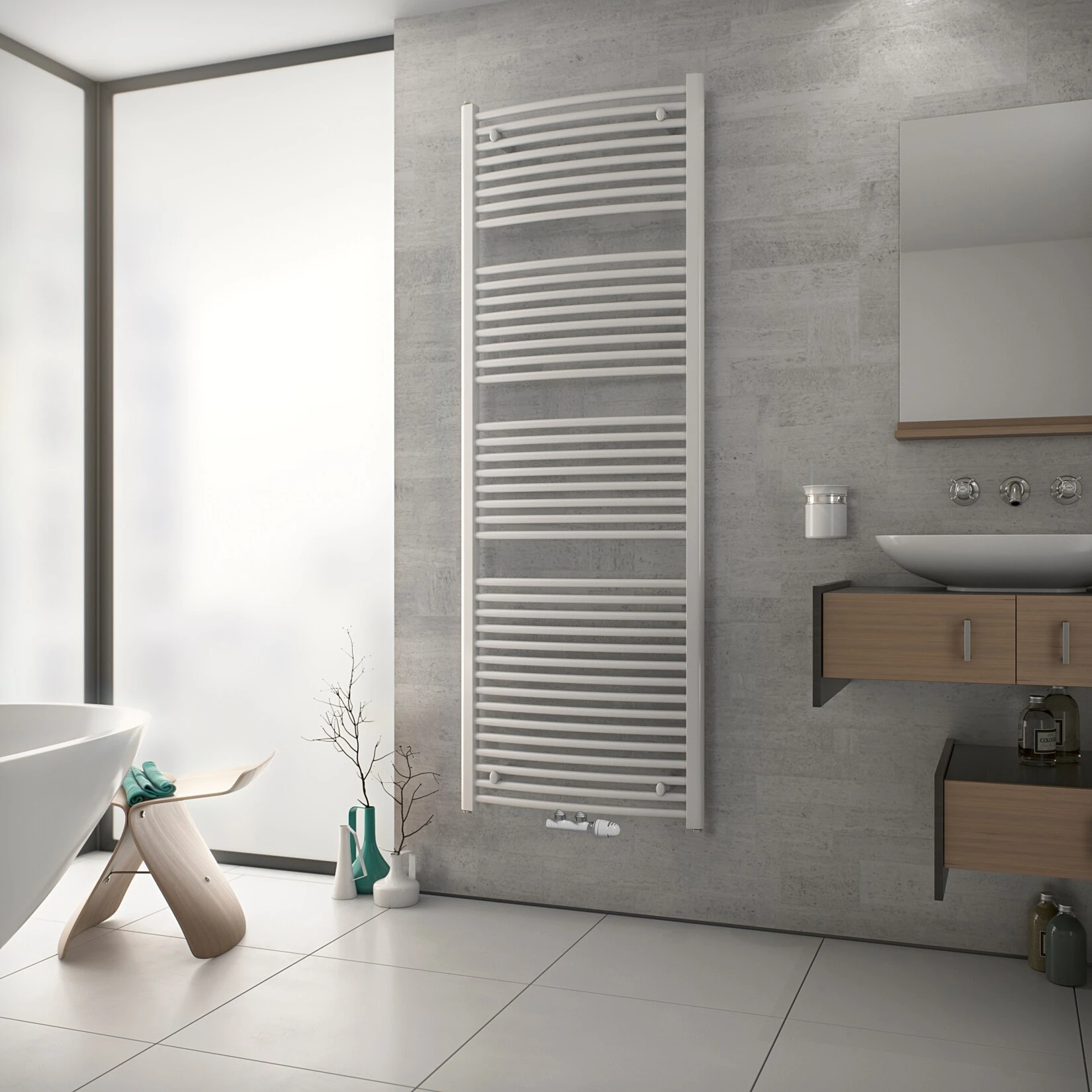XIMAX Badheizkörper TOP in geschwungener Ausführung , seitlichem D – Profil und einem 50 mm Mittenanschluss.
