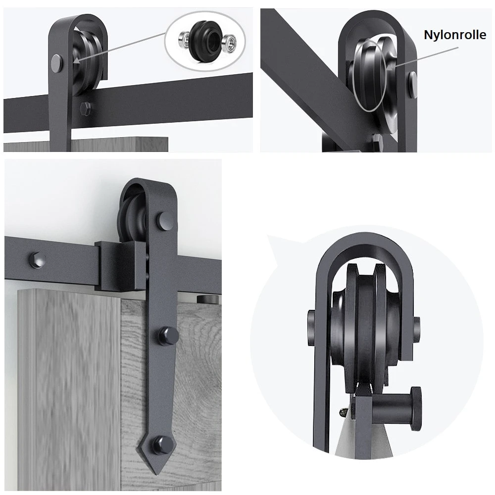- Inklusive Montageset für die Befestigung an Holz- oder Betonwänden. Mit Bodenführung und Türstoppern zur Begrenzung des Laufweges.